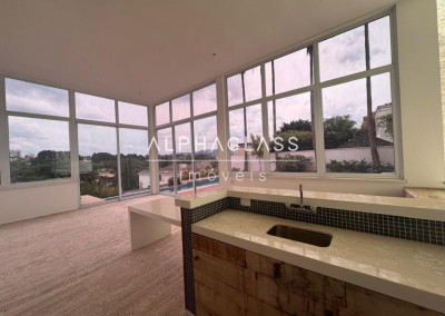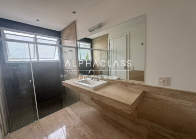 São 5 suítes espaçosas, todas equipadas com ar-condicionado, além de dormitório de serviço e armários planejados, garantindo funcionalidade no dia a dia. A cozinha ampla é ideal para quem valoriza praticidade e organização.