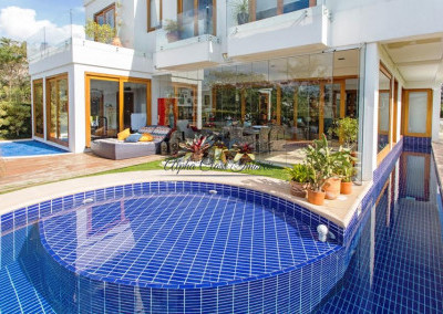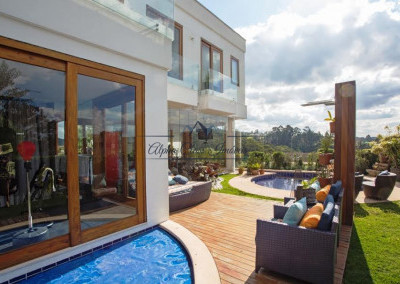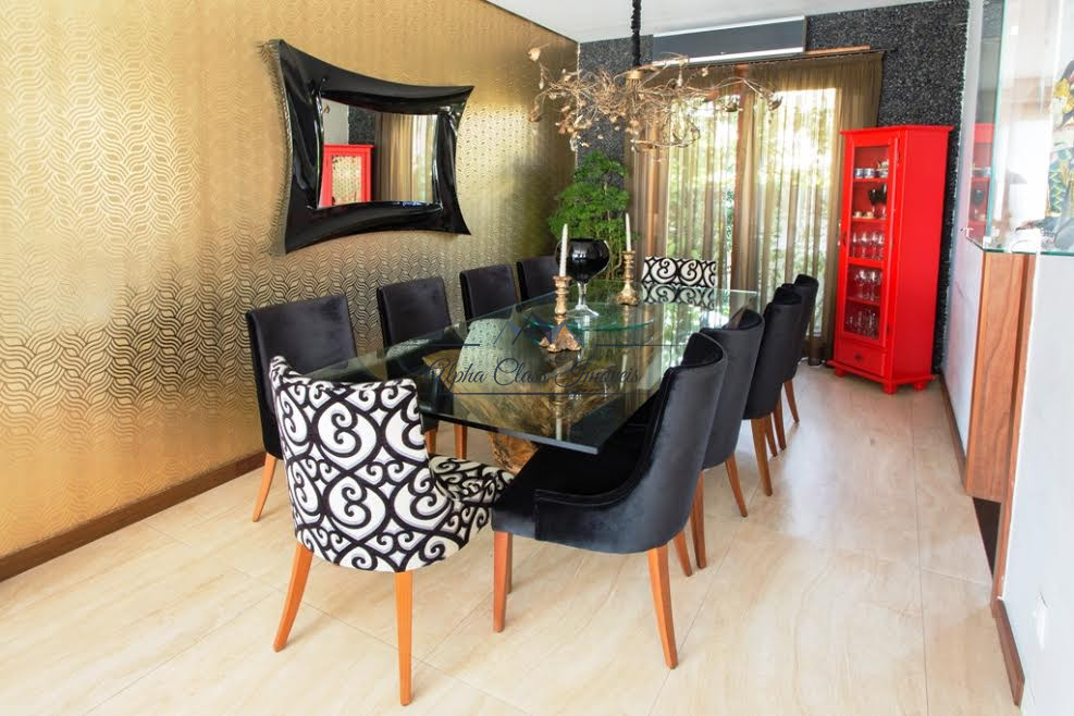 Dispõe de 527m² de terreno e 504m² de construção, são 5 suítes, lazer com piscina e área gourmet, amplo living para 3 ambientes e 4 vagas de garagem.