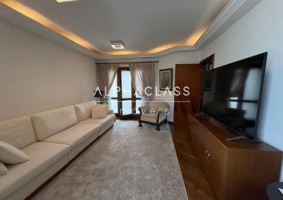 O living para três ambientes proporciona amplitude e luminosidade, criando uma atmosfera acolhedora e sofisticada. Na área íntima, são quatro suítes confortáveis, todas equipadas com ar-condicionado, garantindo bem-estar em todas as estações.