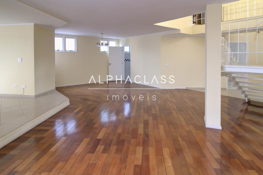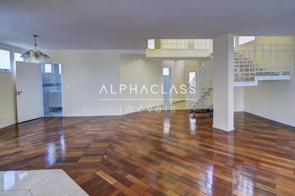 A residência conta ainda com quatro vagas de garagem e está situada em um dos condomínios mais valorizados de Alphaville.
