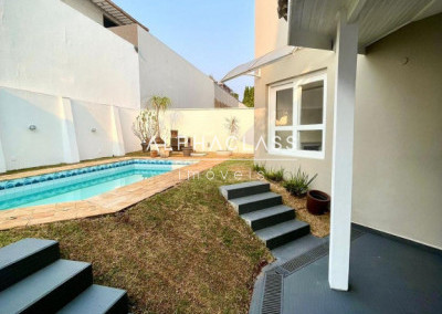 A área íntima dispõe de três dormitórios, sendo duas suítes, garantindo conforto e privacidade aos moradores. O lazer é um dos destaques do imóvel, com área gourmet integrada e piscina, ideal para momentos de convivência e recepção de convidados.