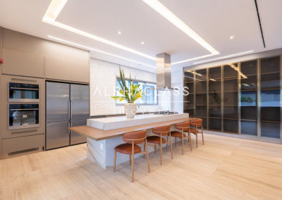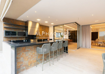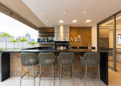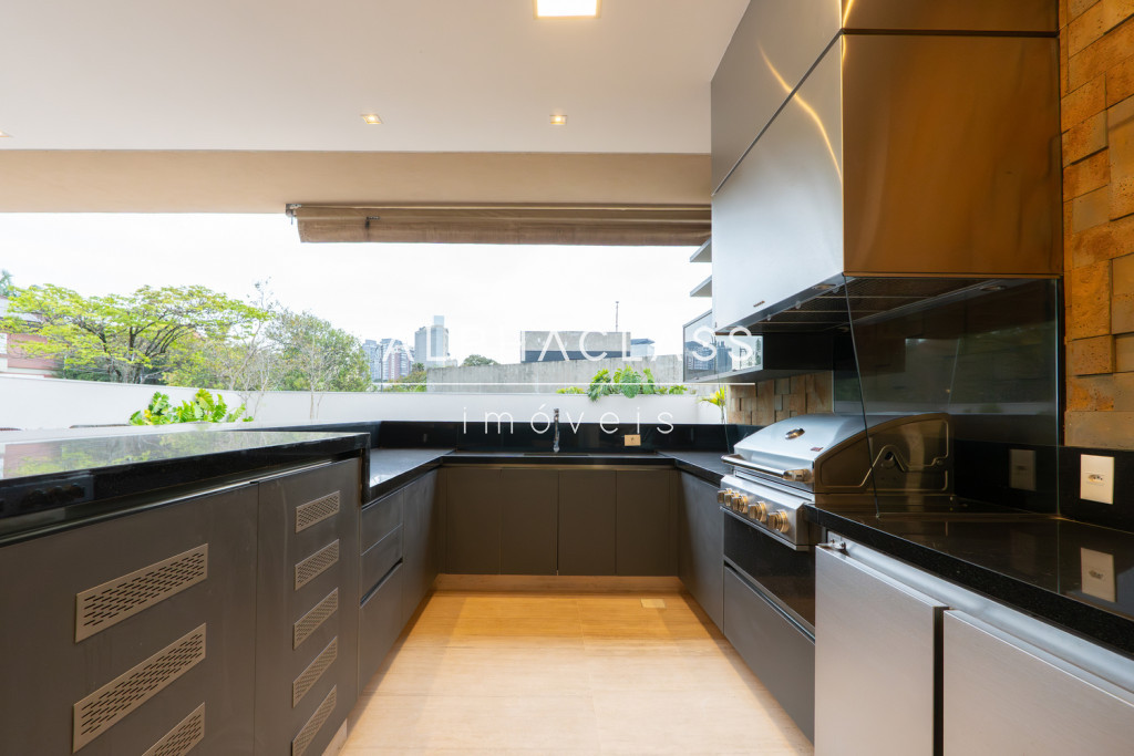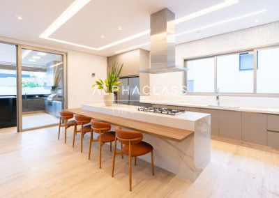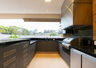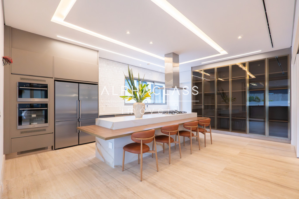Serviços: Cozinha Florense com eletrodomésticos Gorenje Linha Stark, bancadas em Quartzo e Techlam e revestimento Cubus Pigues Mosarte, Lavanderia com Máquina de Lavar e secar, Dispensa, Louceiro, Copa intima no andar superior, Garagem para 9 carros e previsão de tomada para veículos elétricos, Depósito, Suíte de serviço, escada de serviço.