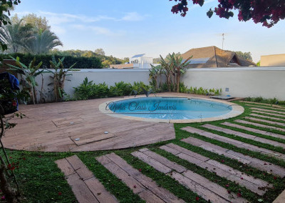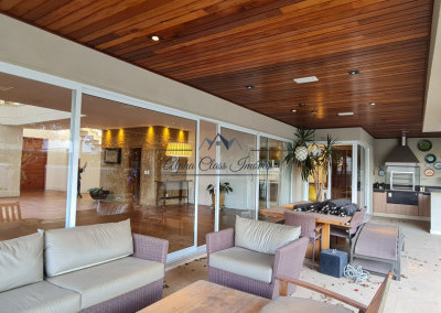 Dispõe de 690m² de terreno e 480m² de construção, são 4 suítes, lazer com piscina e churrasqueira,