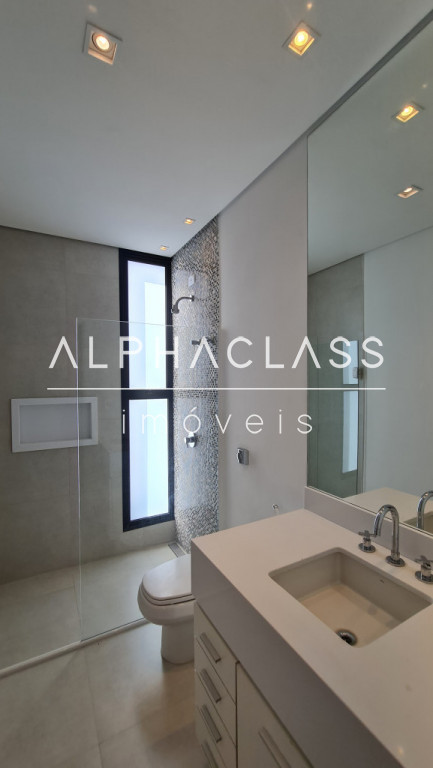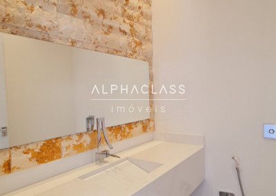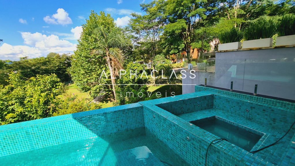 O primeiro andar traz um amplo living integrado à cozinha americana, com conceito aberto, lavabo em pedras e escritório climatizado. O espaço gourmet é completo, com churrasqueira, forno de pizza, bancada em mármore, armários planejados, som ambiente estéreo e ar-condicionado. A área externa oferece piscina com borda infinita e spa aquecido a gás, deck em piso atérmico e banheiro de apoio.