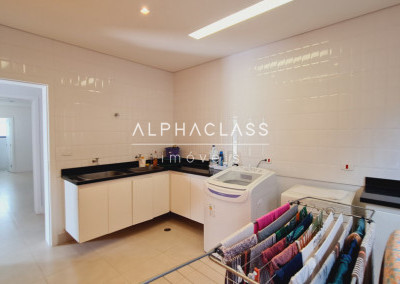 No térreo, há um espaço versátil que pode ser utilizado como depósito, escritório ou ateliê, além de lavanderia com armários, salão multiuso para festas, jogos ou academia, e um apartamento independente de 80 m², completo e equipado. O pavimento ainda conta com suíte de serviço ou hóspede.