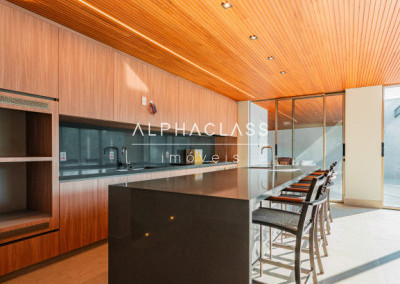 Roof top dos sonhos No topo, um verdadeiro oásis urbano: piscina com entrada pela sauna úmida, espaço gourmet e home theater — tudo cercado por um forro de madeira maciça frisada que aquece e valoriza o ambiente. Ideal para receber amigos ou simplesmente contemplar o pôr do sol com estilo.