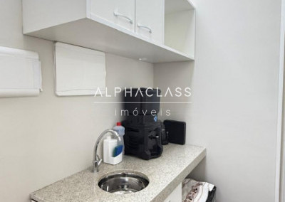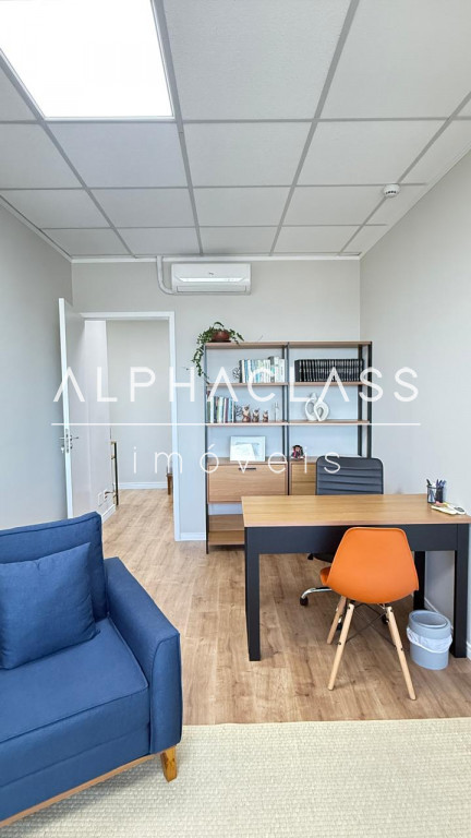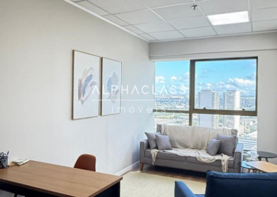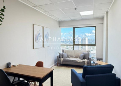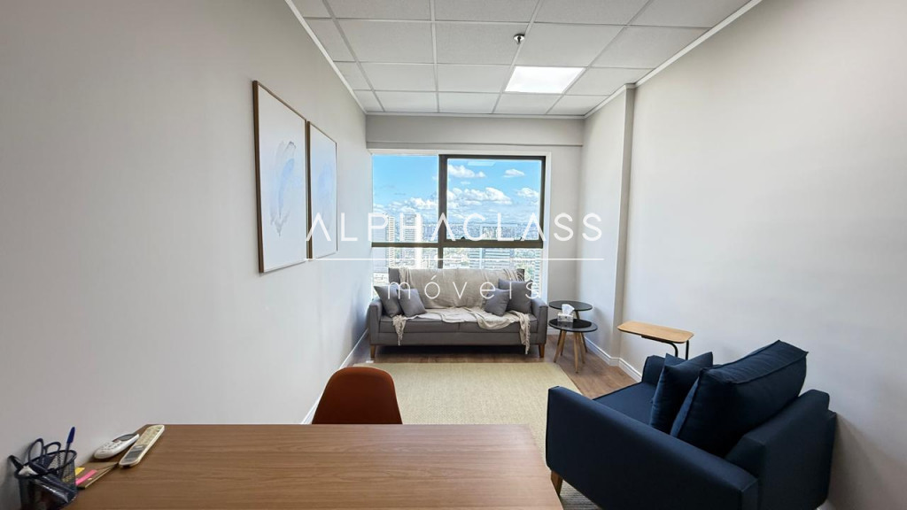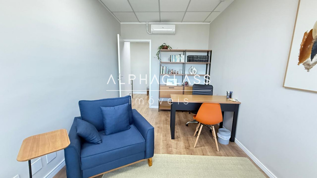 O espaço conta com ar-condicionado, lavabo privativo e 1 vaga de garagem. Está em excelente estado de conservação, com acabamento de qualidade, piso em porcelanato, paredes pintadas e teto em gesso. A ampla janela garante ótima iluminação natural, proporcionando um ambiente agradável e funcional para o dia a dia profissional.