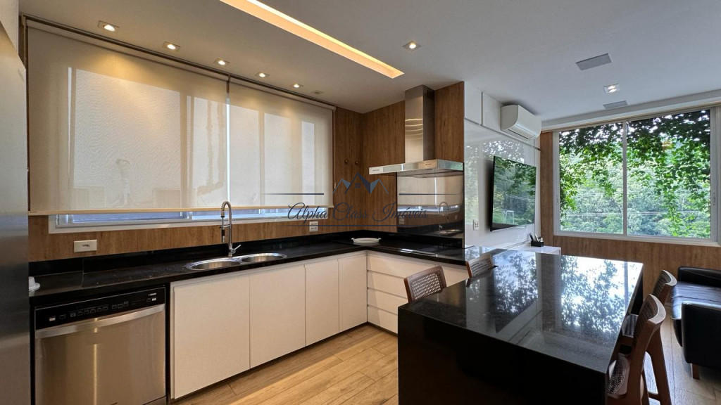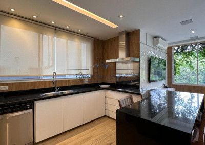 Amplo living com muita luminosidade natural totalmente mobiliada e decorada, integrado ao maravilhoso espaço gourmet, cozinha americana, repleta de armários,