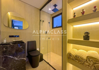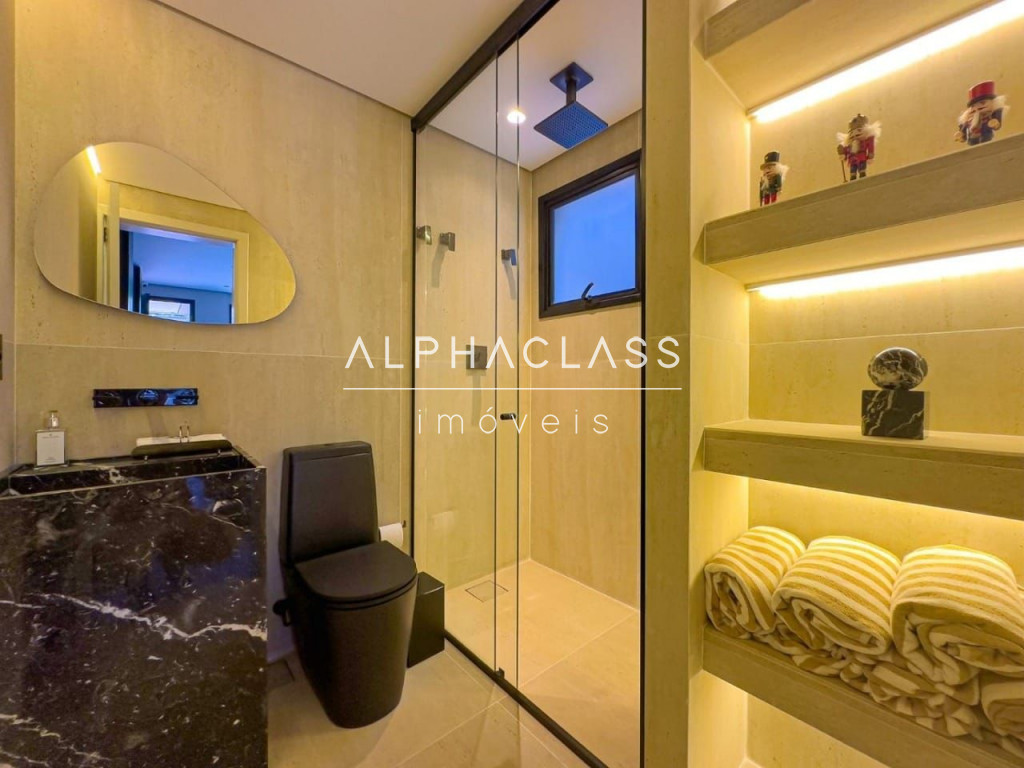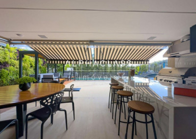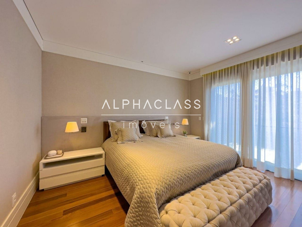 Esta imponente casa de condomínio no Residencial Tamboré 11 oferece 580 m² de área total, projetada para proporcionar conforto e privacidade. Dispõe de 5 dormitórios, todos suítes, e 7 banheiros, complementados por 3 vagas de garagem. O imóvel integra ambientes como living room com lareira, sala de almoço e jantar, e área íntima, além de contar com ar condicionado e armários planejados. A área externa é completa com churrasqueira, espaço gourmet, piscina e hidromassagem, ideal para lazer e convívio.
