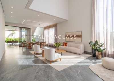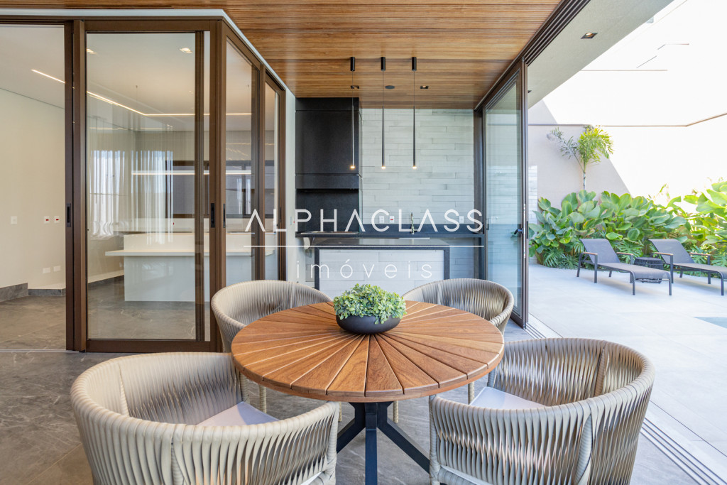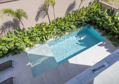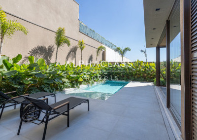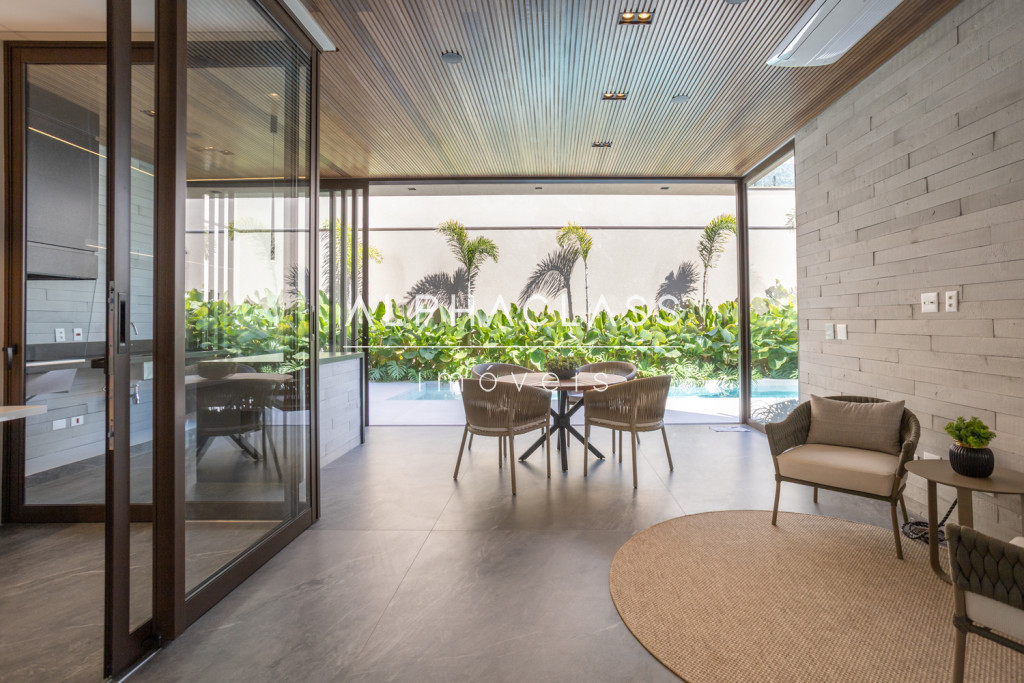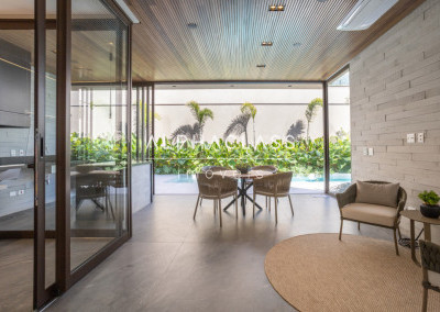 A área de lazer é completa, com espaço gourmet integrado, piscina e área externa planejada para relaxamento e entretenimento.