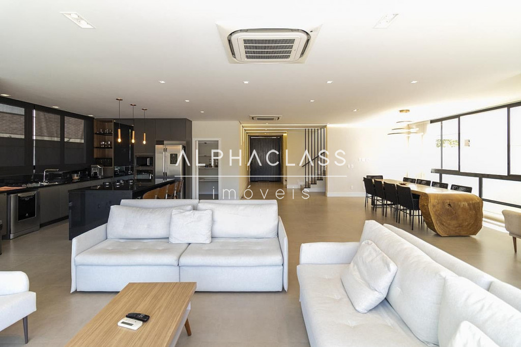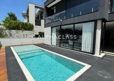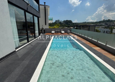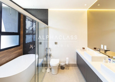 Entre os detalhes, destacam-se a marcenaria fina em todos os ambientes, eletrodomésticos de qualidade, ar-condicionado nas suítes e na sala, piscina com trocador de calor automatizado e filtro de tratamento com ozônio.