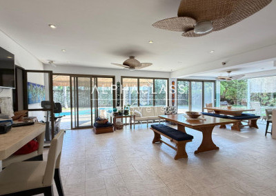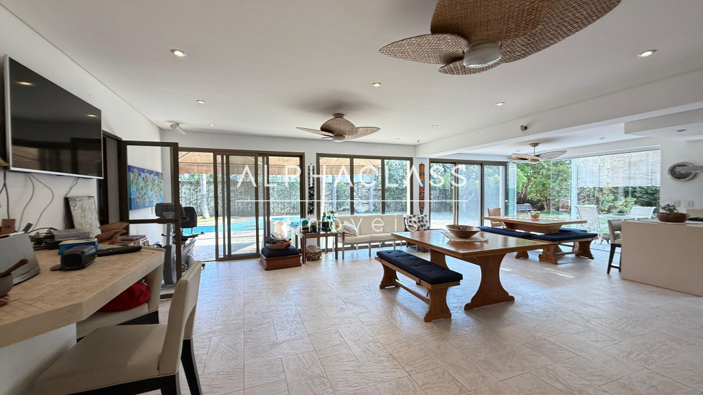 Com 1.190m² de terreno e 780m² de construção, esta residência impressiona pelo espaço e pela sofisticação. O amplo living para 3 ambientes integra elegância e funcionalidade, criando um ambiente perfeito para receber com conforto.