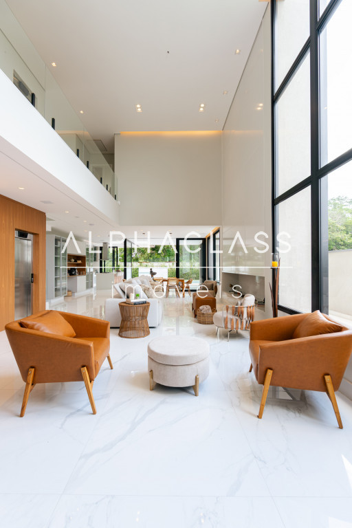 A casa conta com elevador Bass Tech, que conecta os pavimentos com praticidade e sofisticação, além de escritório privativo e sala íntima, perfeita para relaxar ou desfrutar de momentos mais reservados.