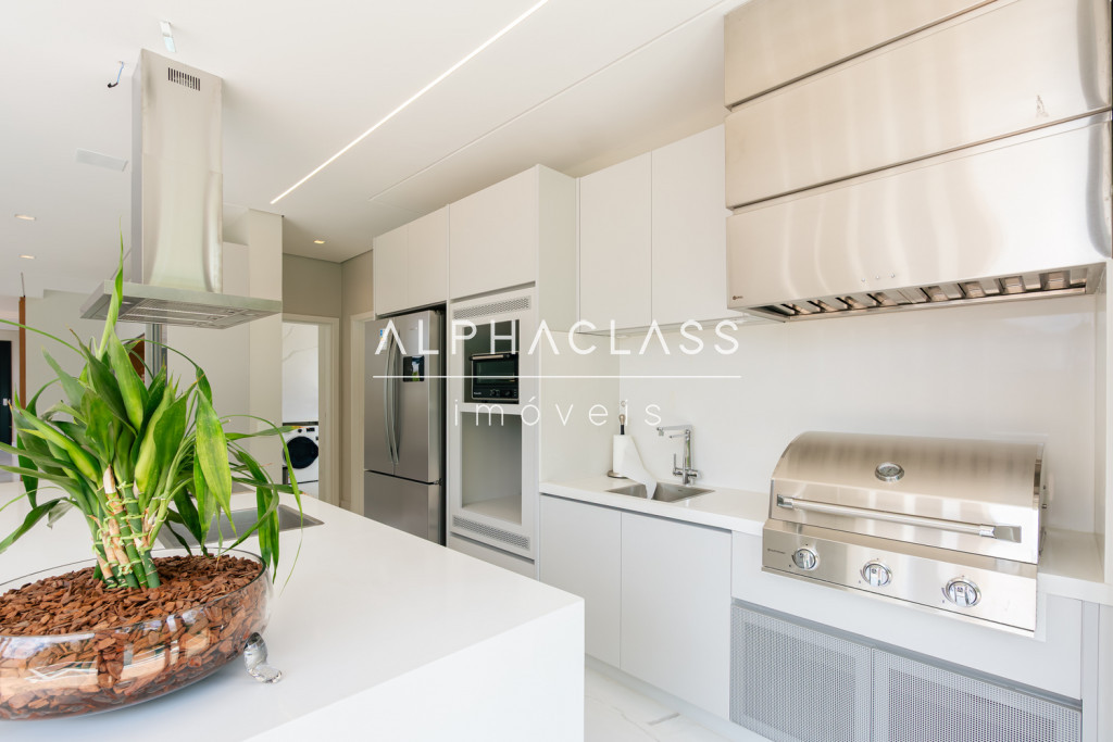 A cozinha é funcional e convidativa, com despensa e integração ao espaço gourmet externo, equipado com churrasqueira Eletromec. A área de lazer contempla piscina aquecida com hidromassagem, ideal para desfrutar de momentos especiais.