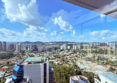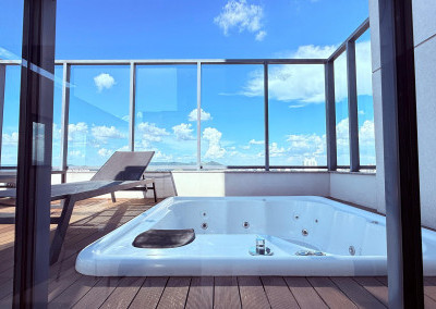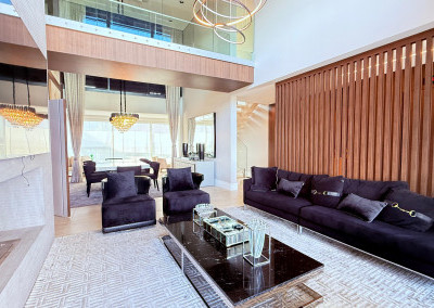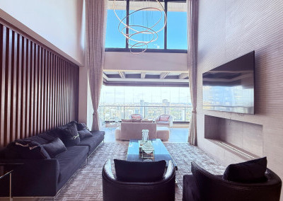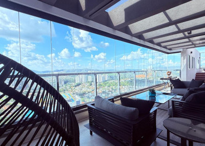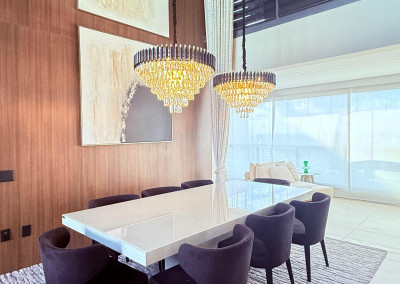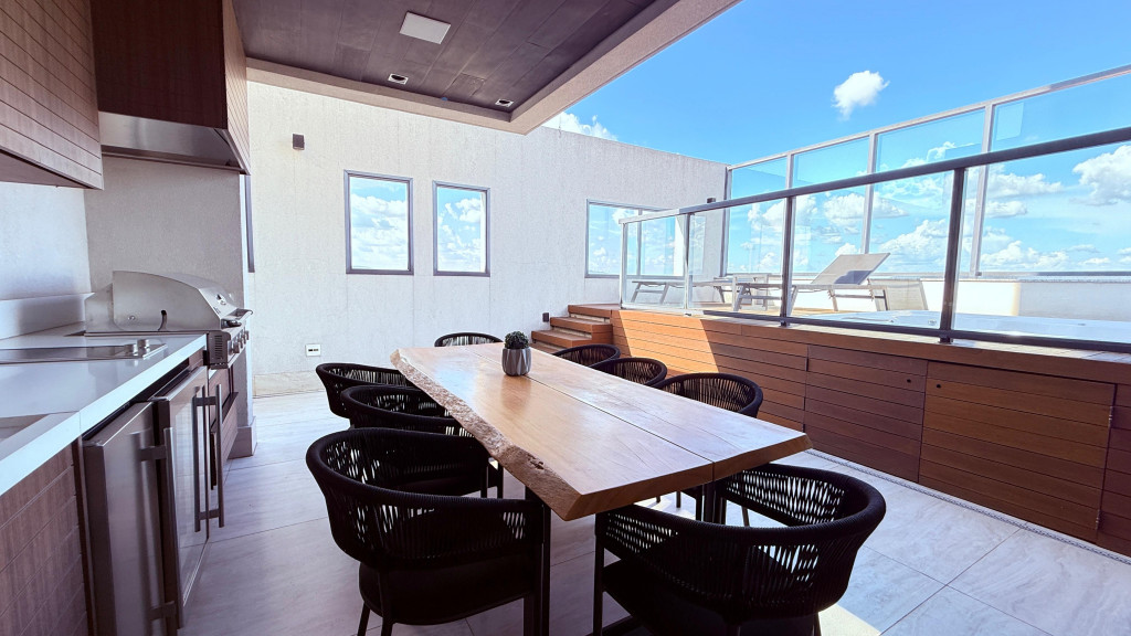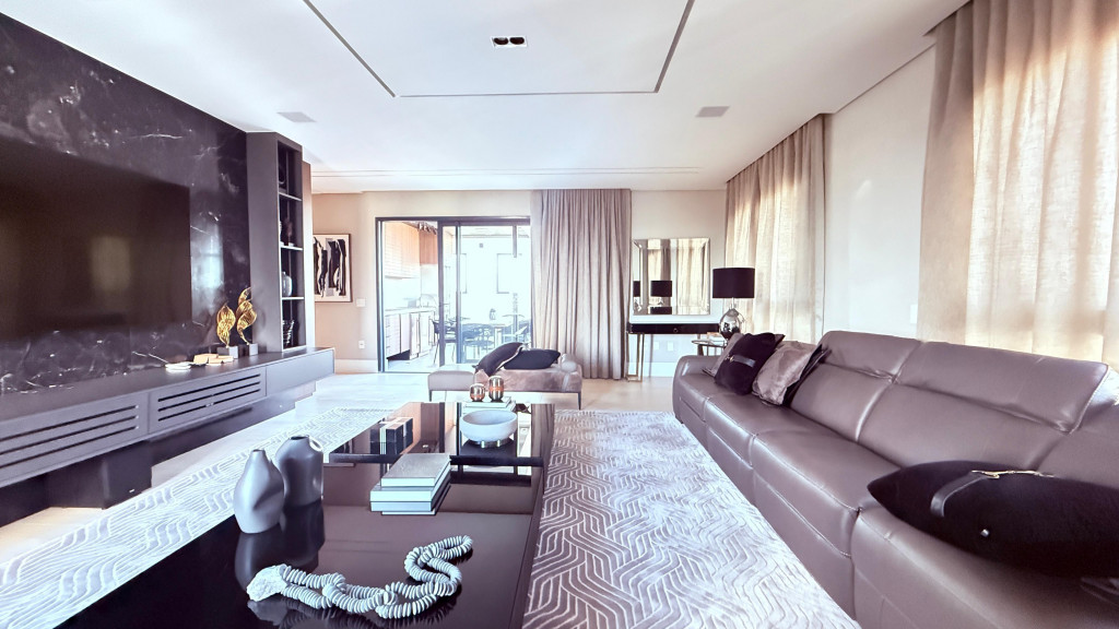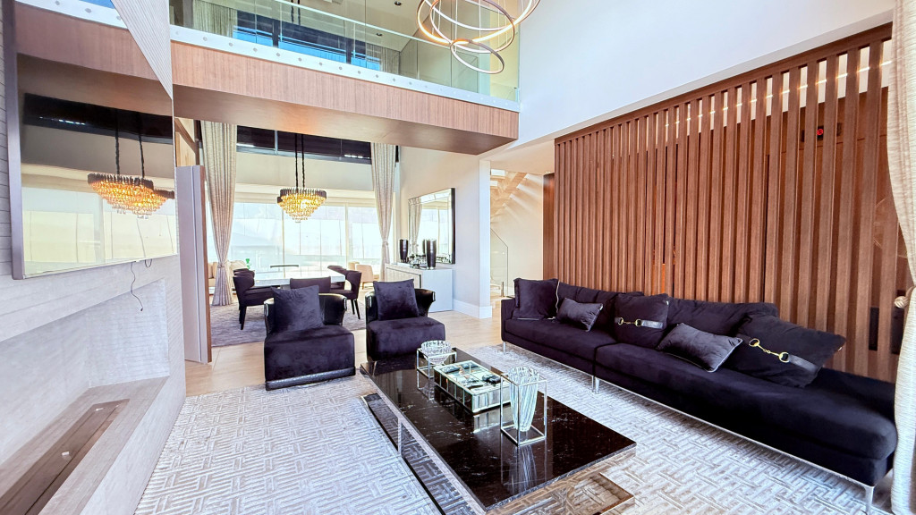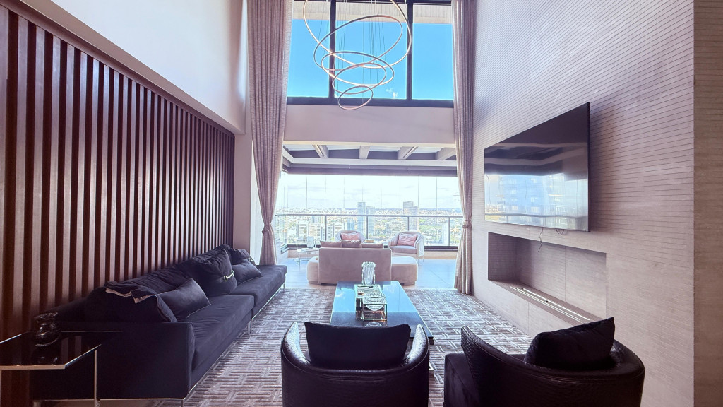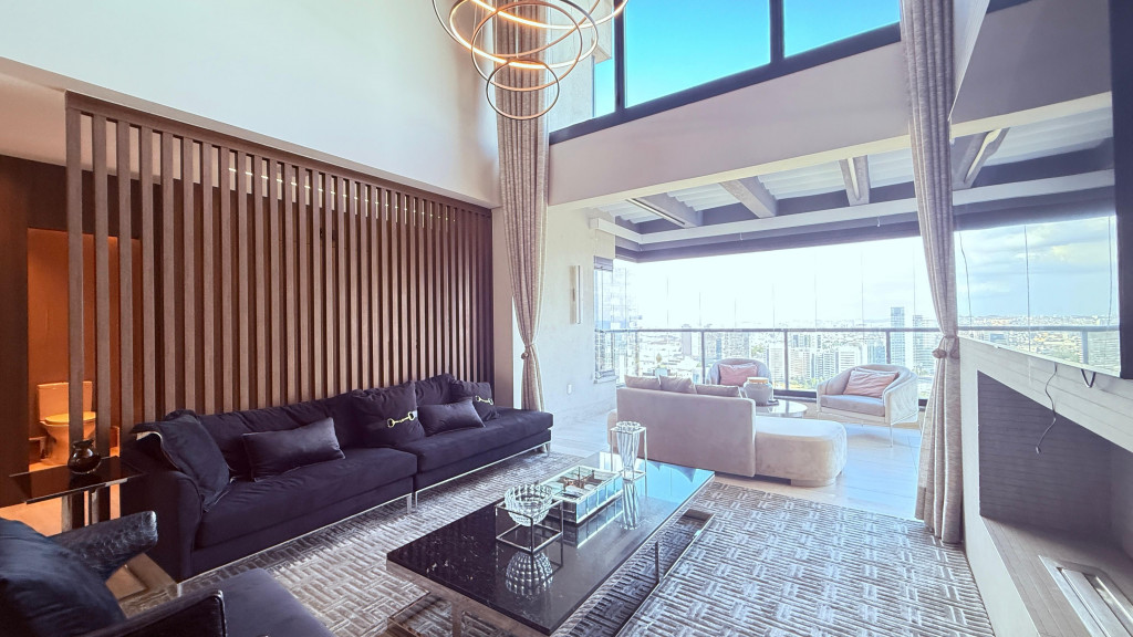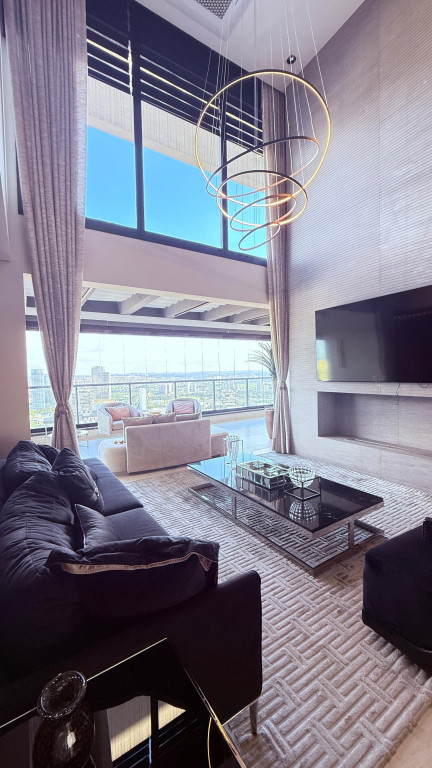Cobertura contemporânea com aproximadamente 570 m², pé-direito duplo, ambientes amplos, integrados e excelente iluminação natural.