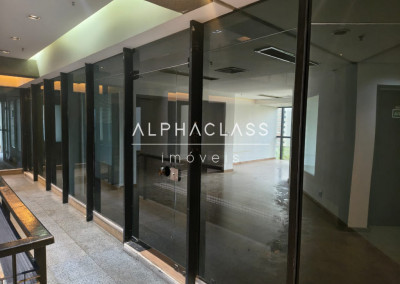 O imóvel possui 310 m² de área privativa, contando com ar-condicionado instalado, quatro lavabos, infraestrutura de fibra óptica e luminárias, oferecendo praticidade e conforto para diversos tipos de atividades corporativas. A planta é versátil, permitindo adequação conforme a necessidade da empresa.