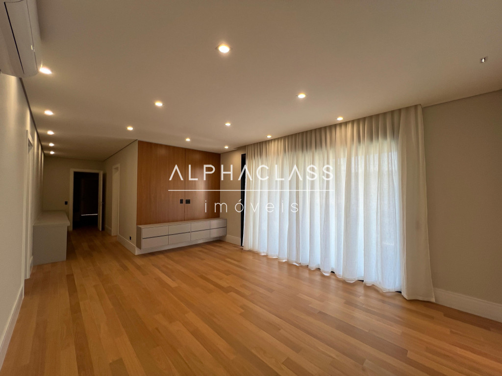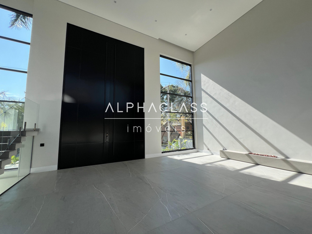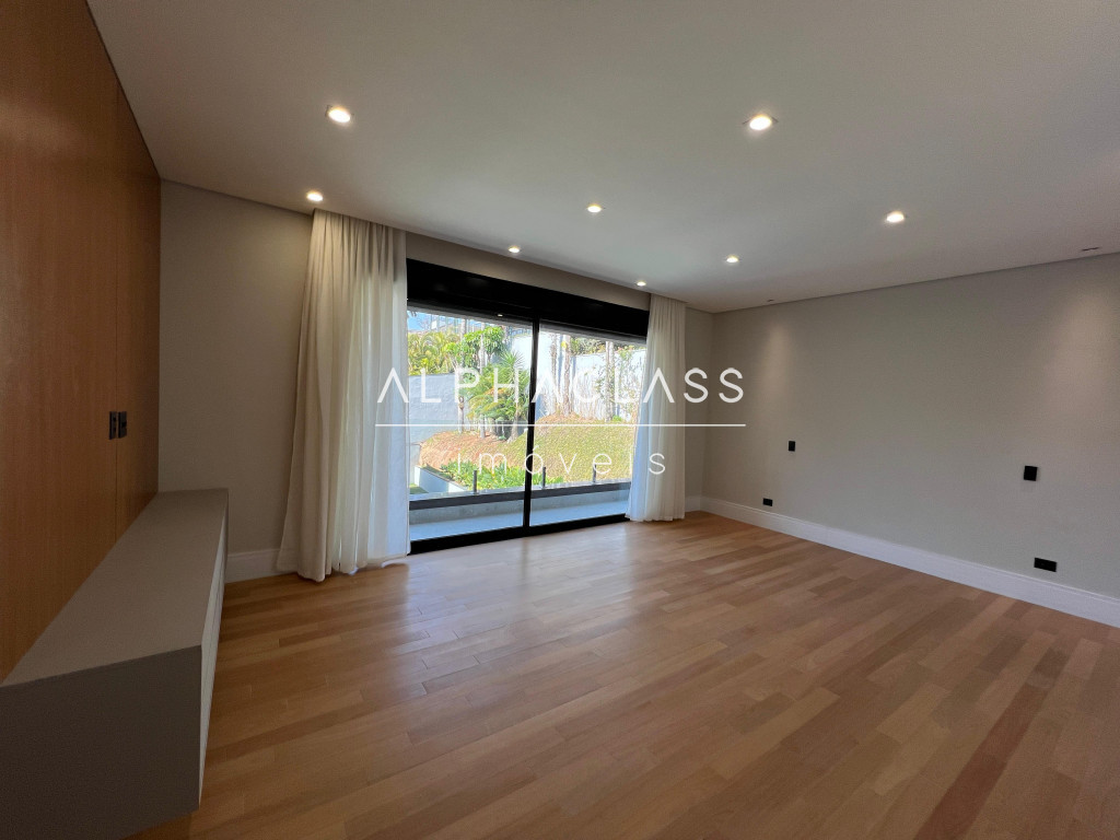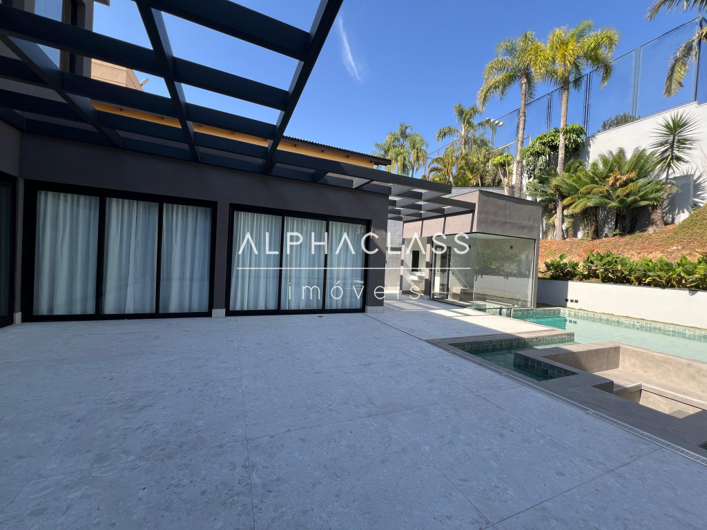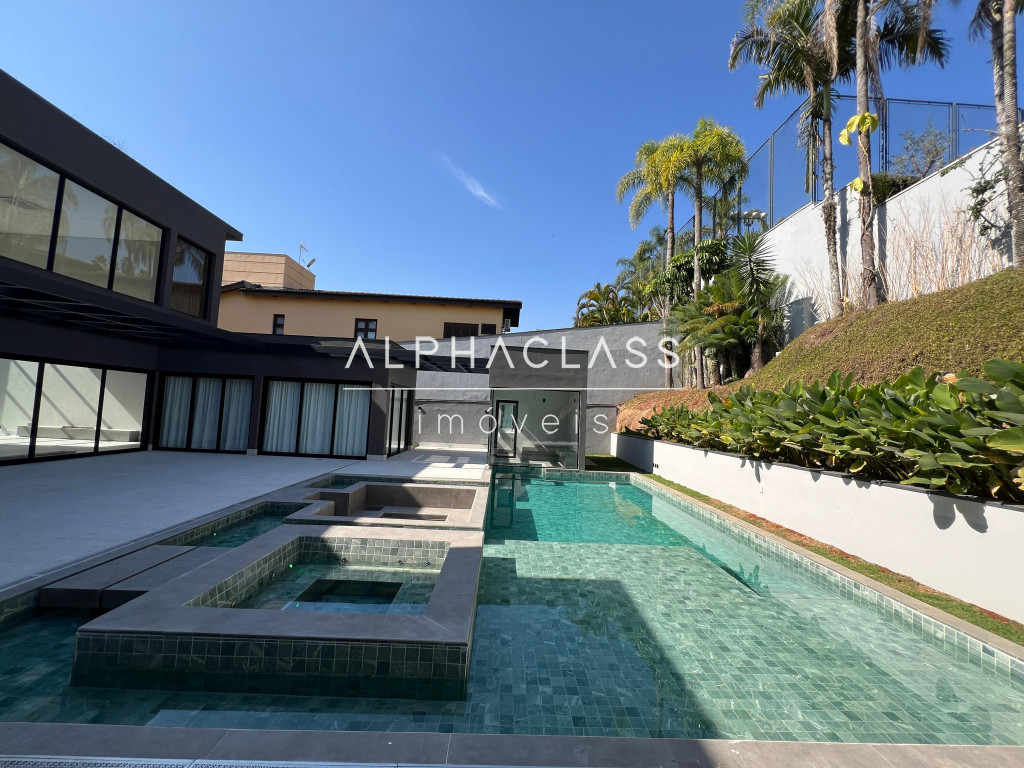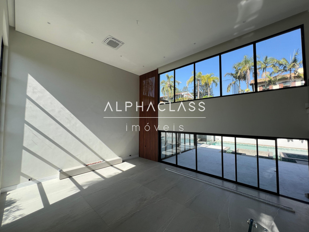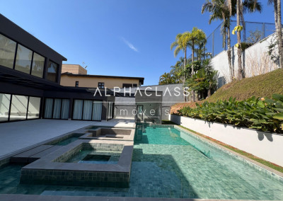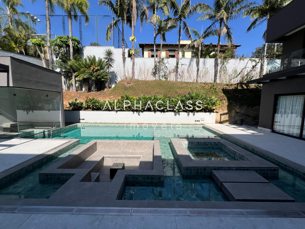 Residência de alto padrão, mobiliada, com 1.120m² de terreno e 1.090m² de construção em um dos condomínios mais exclusivos de Alphaville. Conta com 5 suítes com closets e armários planejados, incluindo Suíte Master com banhos Sr. e Sra., sala íntima, escritório, sala de TV e living para 3 ambientes com pé-direito de 7,5m.