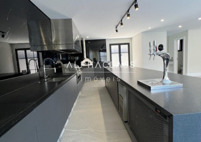 Cozinha e área gourmet completas com mobiliário Florense e eletros UD House. Adega climatizada walk-in para 260 garrafas. Área de lazer integrada com piscina automatizada e iluminada por LED, spa, sauna, academia e pit fire. Elevador atendendo os 3 pavimentos, projeto de iluminação em LED, infraestrutura para energia fotovoltaica e ar-condicionado em todos os ambientes.