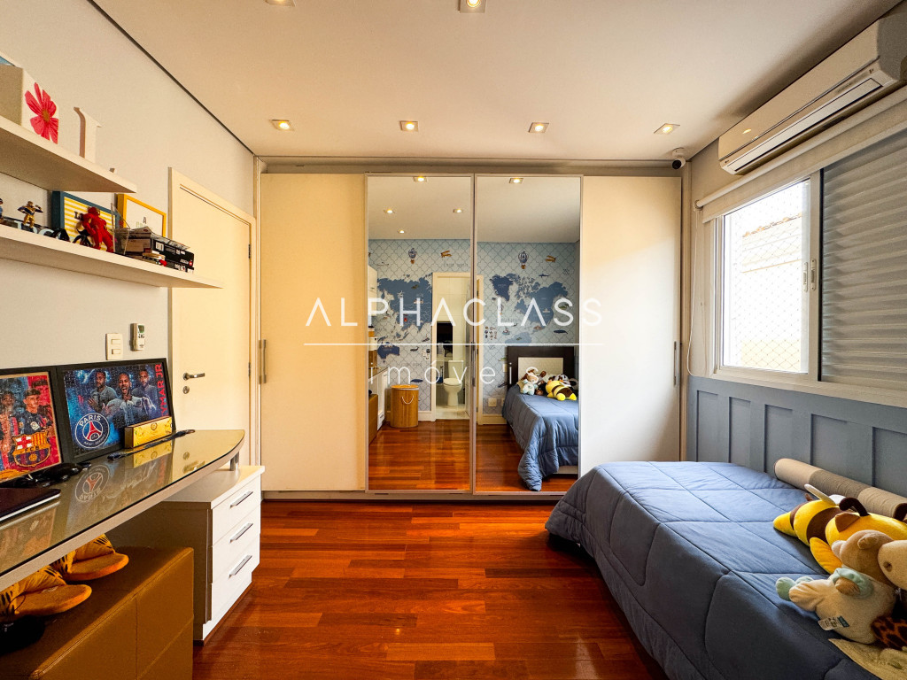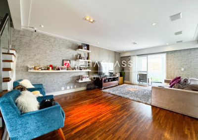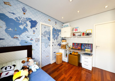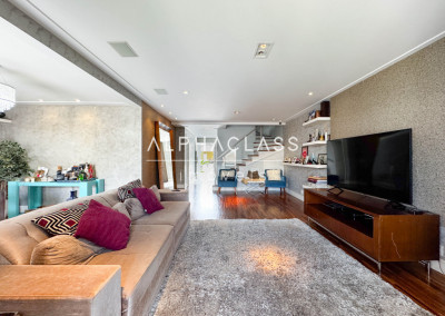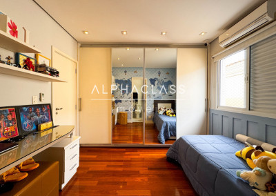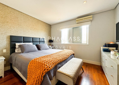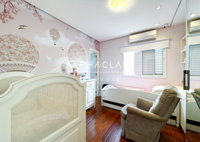 Possui 4 dormitórios, sendo 2 suítes. A suíte master conta com closet e banheiro com cuba dupla. A segunda suíte possui banheiro privativo e móveis planejados. Os dormitórios 3 e 4, também com planejados, compartilham um banheiro. Há ainda roupeiro no corredor e piso de madeira em todos os quartos, garantindo conforto térmico e elegância.