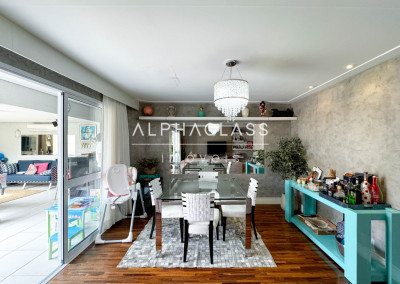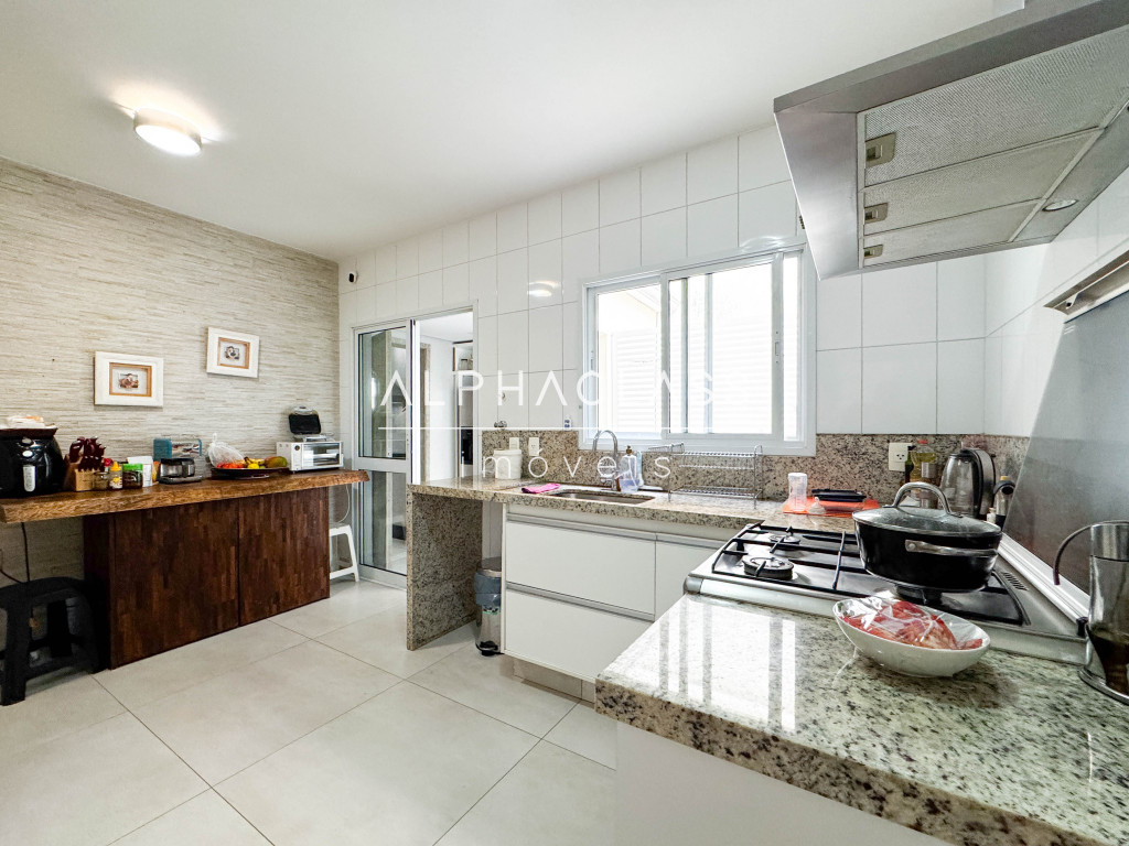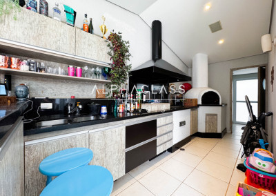 A área social é totalmente integrada, com sala para 3 ambientes, área gourmet com churrasqueira e forno de pizza, além de um agradável quintal com spa. A cozinha é fechada e equipada com eletrodomésticos, lavanderia é espaçosa e funcional e 4 vagas de garagem.