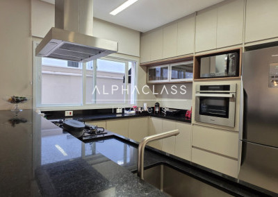 O acabamento é de alto padrão, com porcelanatos Portobello, piso em madeira maciça, piso atérmico Castelatto na área da piscina, aquecimento solar com sistema de pressurização, móveis planejados e ar-condicionado em todos os ambientes. O projeto luminotécnico valoriza cada detalhe, com luminárias de alta qualidade.