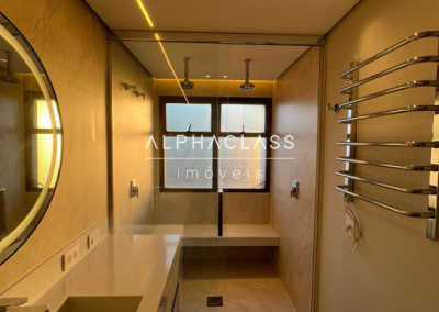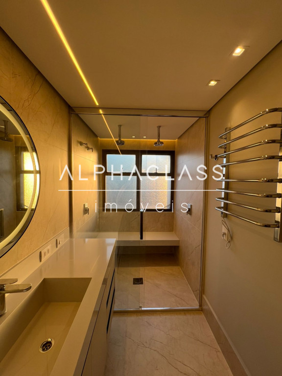 Diferenciais incluem persiana elétrica na área gourmet, cortinas em todos os ambientes, sistema de som no home theater, portas com fechadura eletrônica, toalheiros elétricos nas suítes e acabamentos hidráulicos cromados.