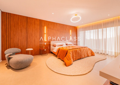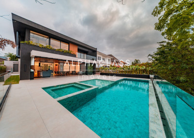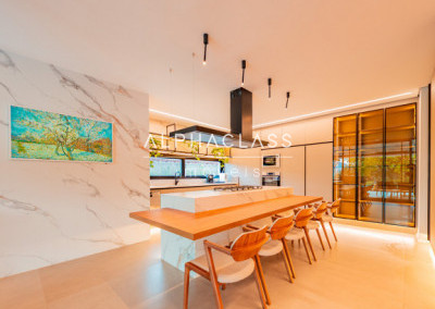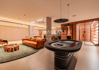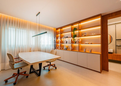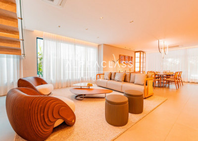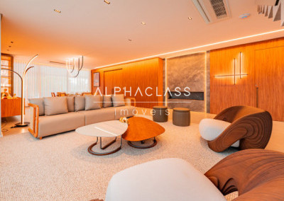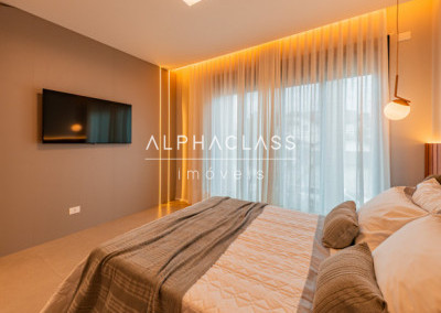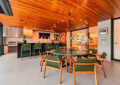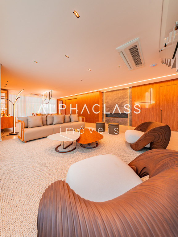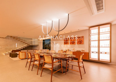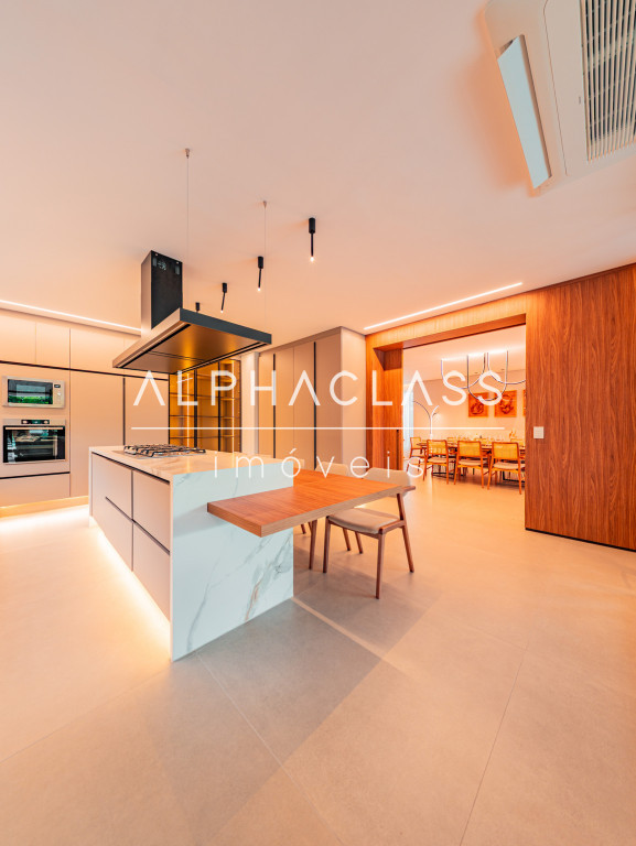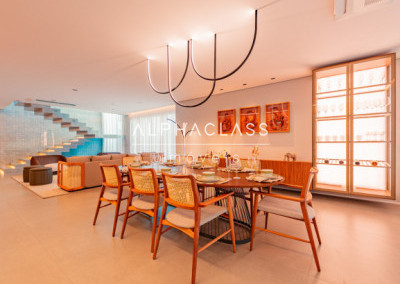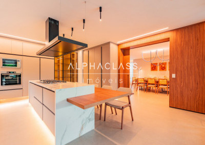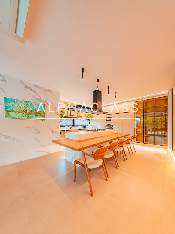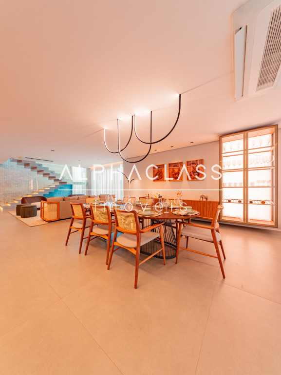 São 760m² de terreno e 850m² de construção, com ambientes integrados, climatizados e envoltos por luz natural. O amplo living se conecta ao espaço gourmet com balcões climatizados e uma vista de tirar o fôlego. Persianas automatizadas garantem conforto e privacidade com um simples toque. A cozinha é equipada com armários planejados e até máquina de gelo – perfeita para receber com estilo.