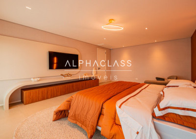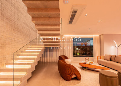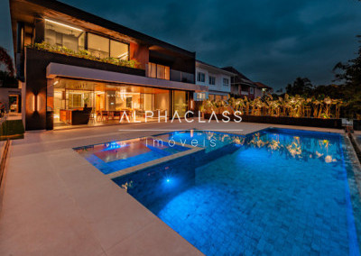 No piso superior, cinco suítes espaçosas e uma copa de apoio oferecem conforto e funcionalidade para toda a família. Tudo isso em um dos condomínios mais exclusivos de Alphaville.