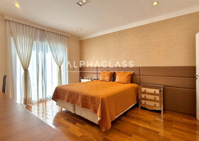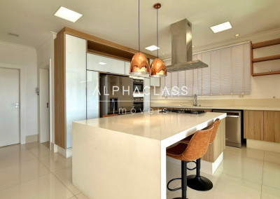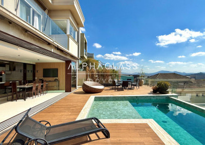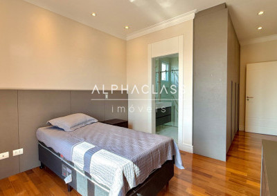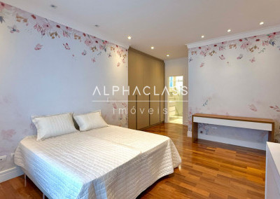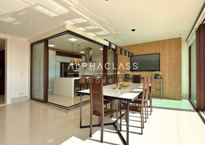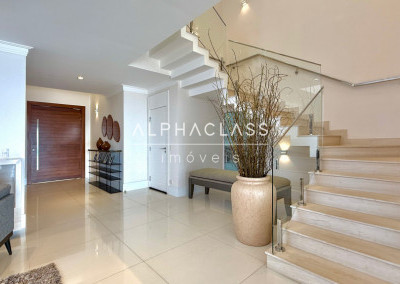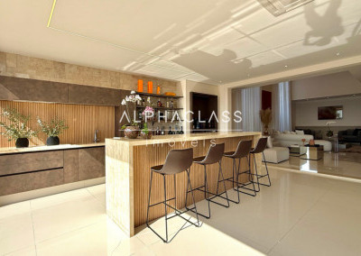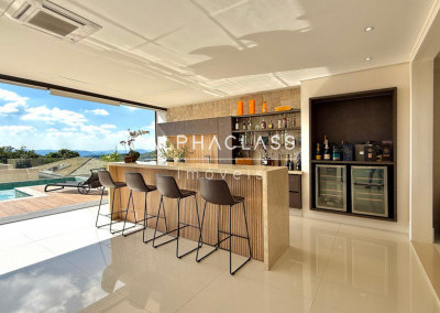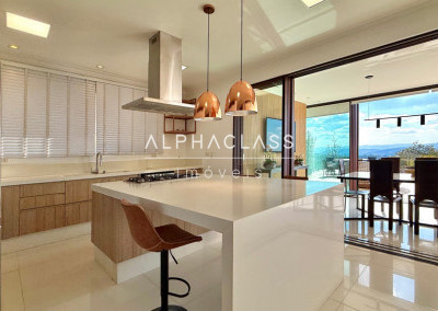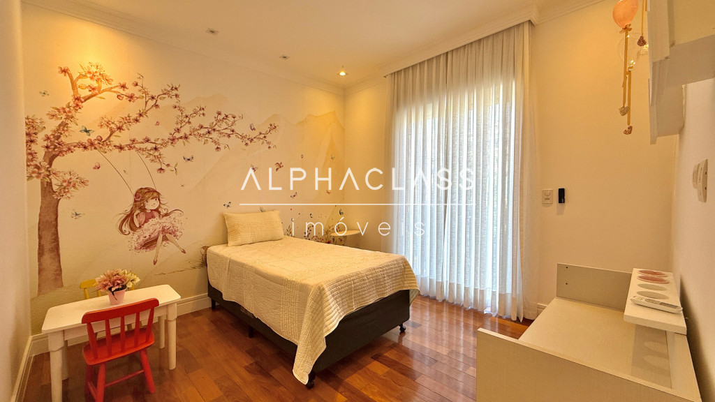 Equipada com armários planejados, móveis de alto padrão e persianas automatizadas, a residência dispõe de cozinha com armários, despensa, depósito, lavanderia, dependência para funcionários, entrada lateral e entrada de serviço.