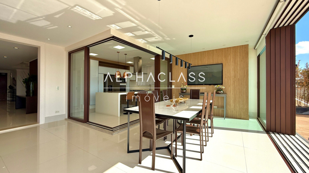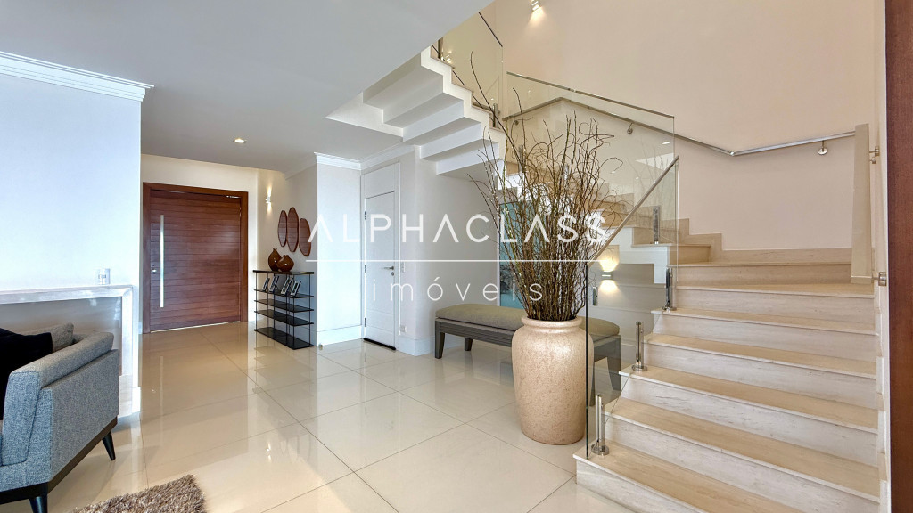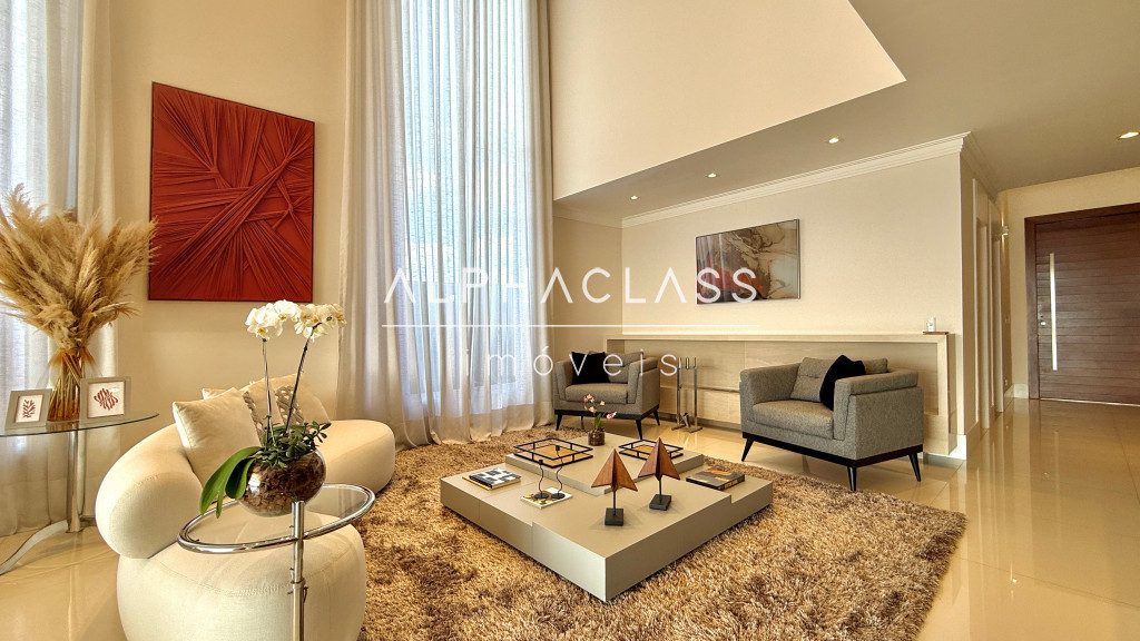 São 4 suítes, incluindo a master com closet e banheira, oferecendo conforto e privacidade. A casa conta ainda com sala de jantar, home theater e escritório, todos planejados para unir praticidade e sofisticação.