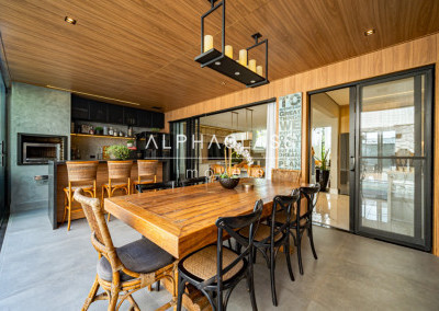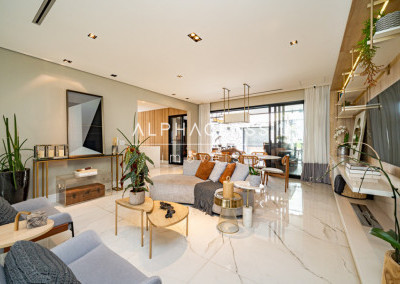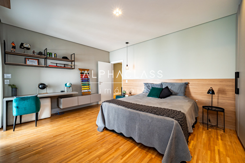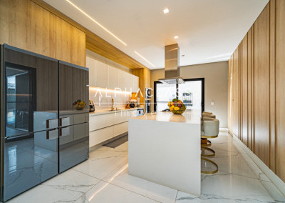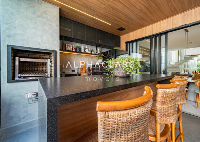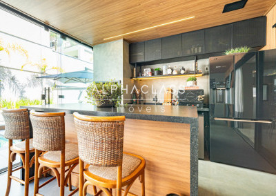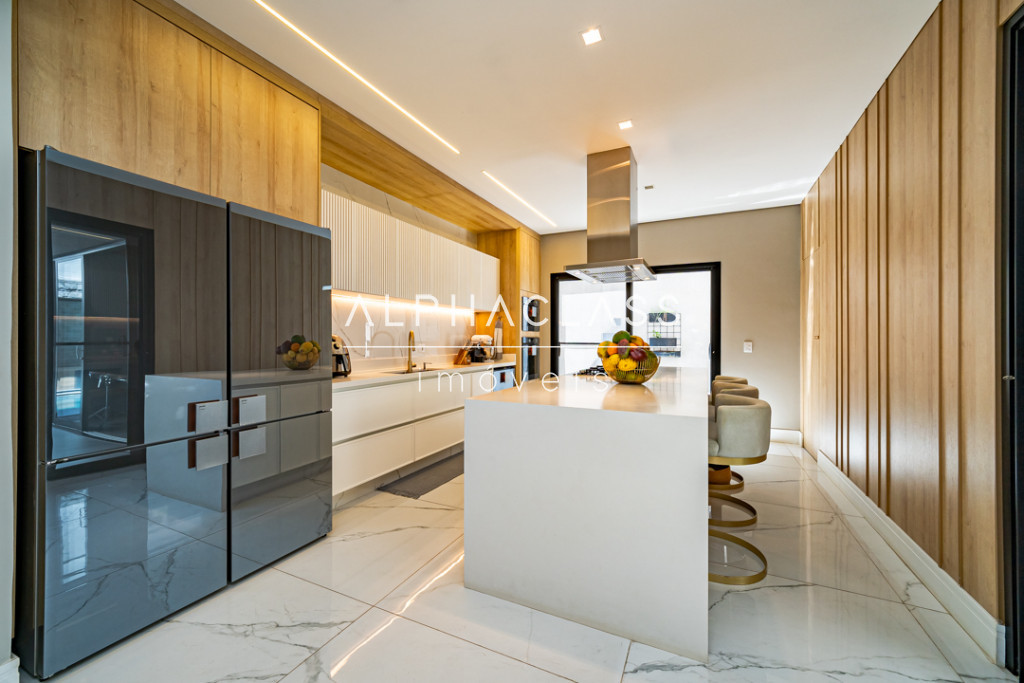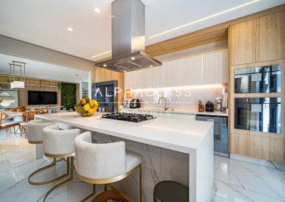 São 4 suítes amplas, todas com acabamentos de alto padrão e ótima iluminação natural. A cozinha é planejada e se integra harmoniosamente à área social, ideal para o convívio em família.