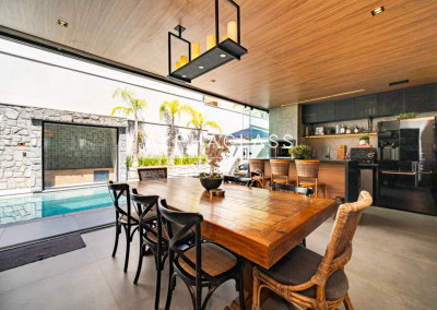 A área de lazer é completa, com espaço gourmet e piscina, perfeita para momentos de descanso e entretenimento. A casa dispõe ainda de 4 vagas de garagem.