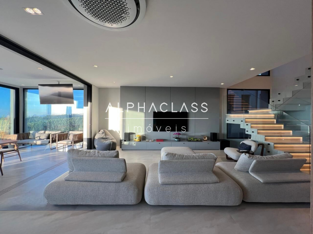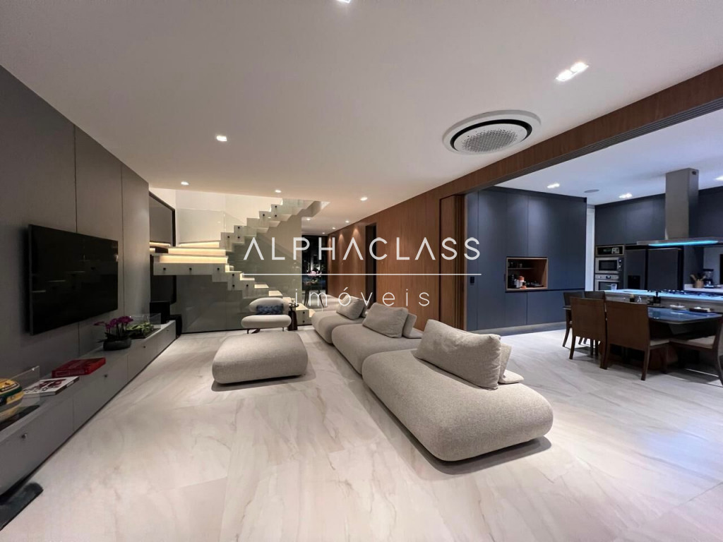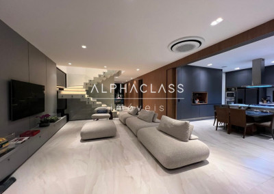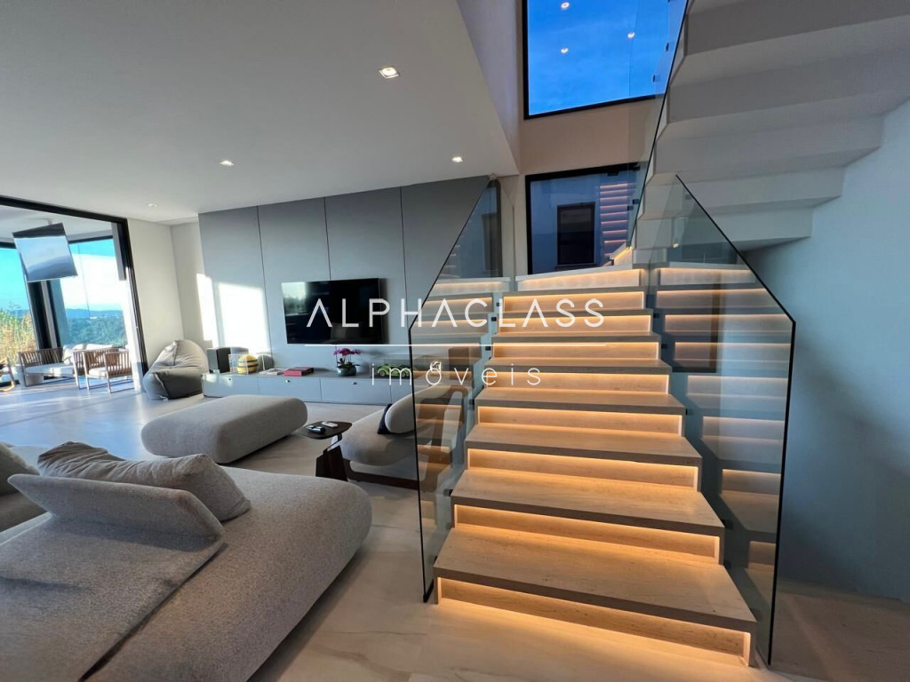 A casa dispõe ainda de garagem para três veículos e sistema de energia fotovoltaica com 24 placas, garantindo economia e sustentabilidade. Localizada em um dos condomínios mais valorizados de Alphaville, oferece segurança, infraestrutura completa e fácil acesso às principais vias da região.