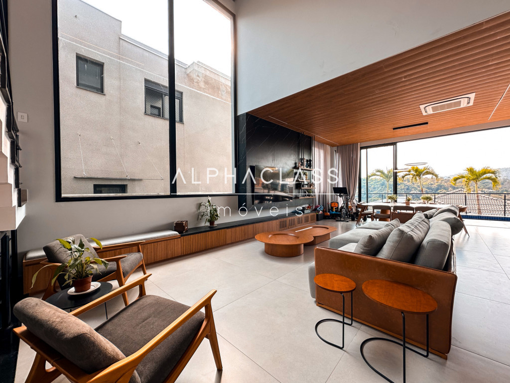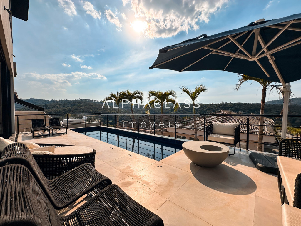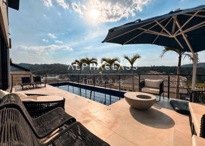 A área de lazer é completa, com espaço gourmet e piscina, perfeita para momentos de convivência e relaxamento. Com 4 vagas de garagem, esta casa se destaca pelo mobiliário de alto padrão, acabamentos refinados e localização privilegiada em um dos condomínios mais valorizados de Alphaville, reconhecido pela segurança, infraestrutura moderna e contato com a natureza.