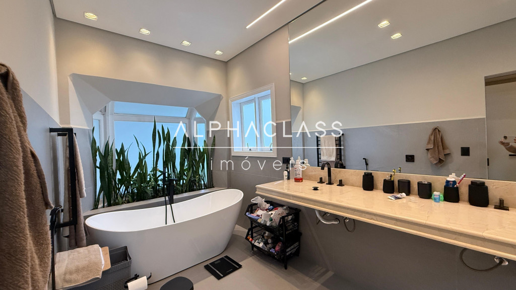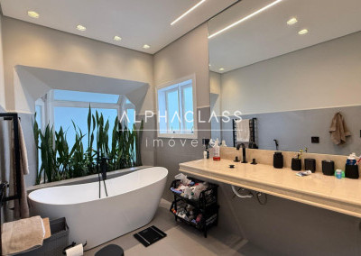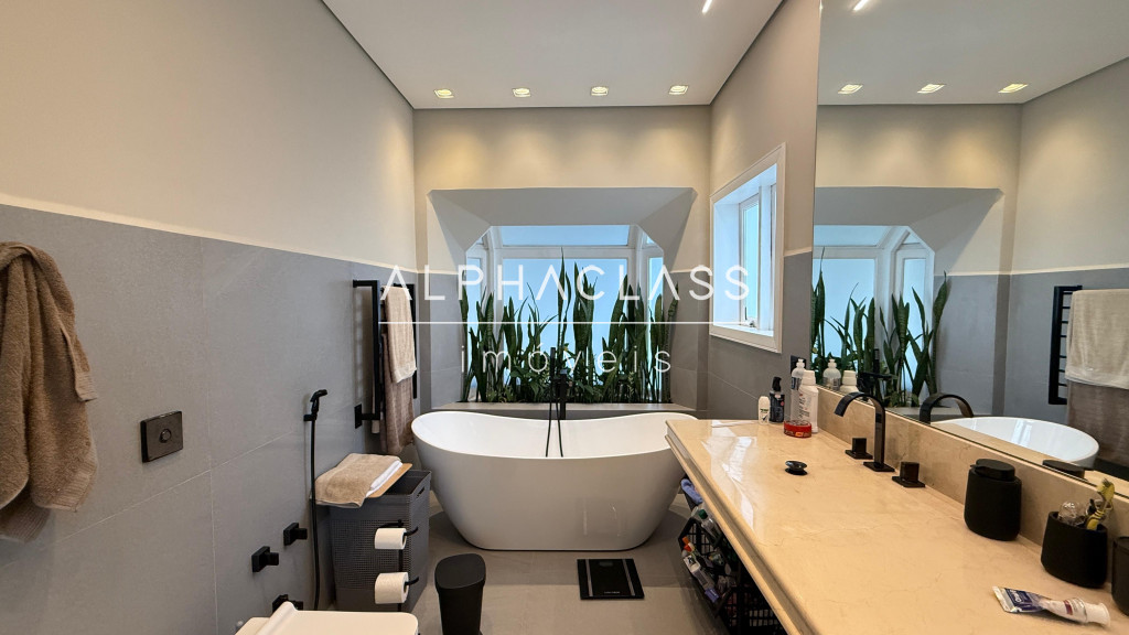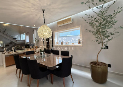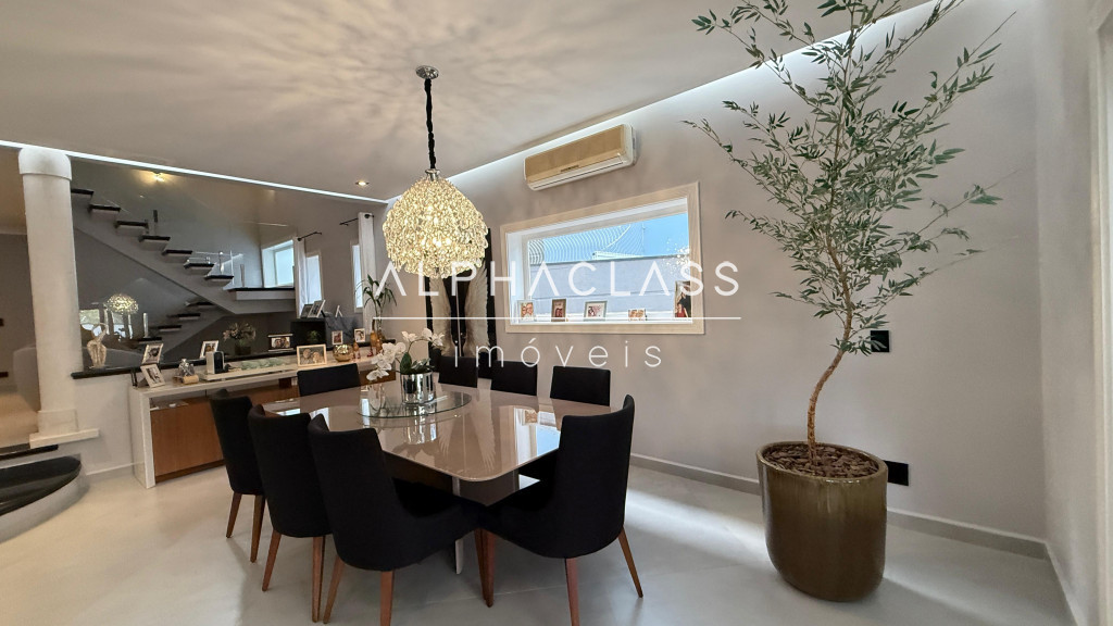 A casa conta ainda com 4 vagas de garagem, cozinha moderna e equipada, ambientes climatizados e projeto de interiores sofisticado, oferecendo praticidade e conforto para quem busca um imóvel pronto para morar.