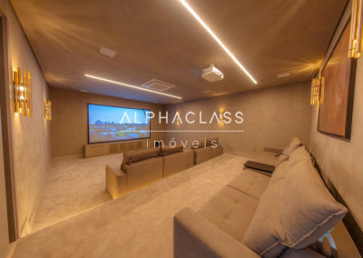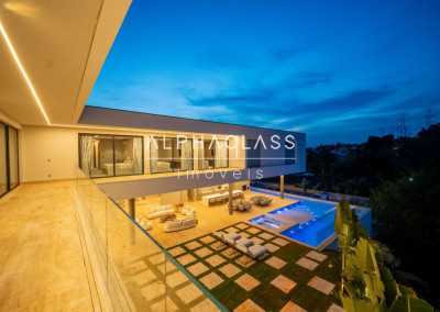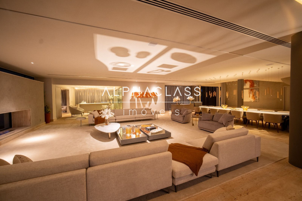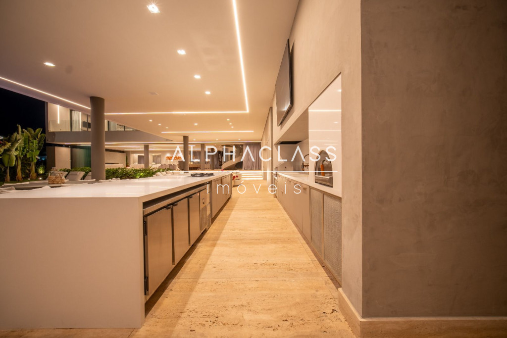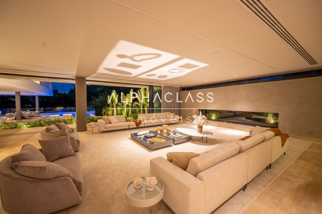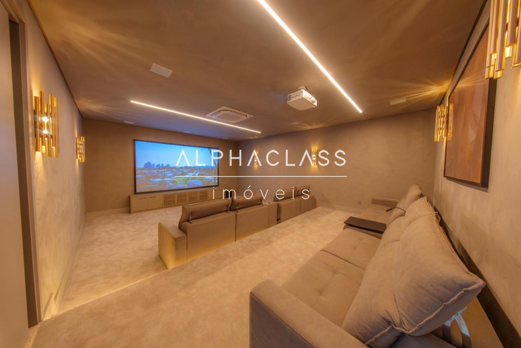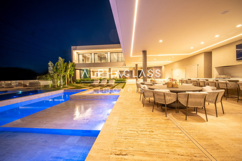 Possui home cinema, espaço gourmet completo, sauna, spa, piscina integrada ao jardim, rooftop e ambientes projetados para receber luz natural em todos os espaços.