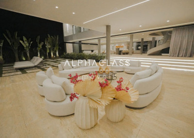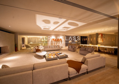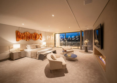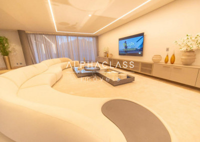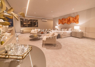 O imóvel conta com 9 suítes, sendo 6 suítes sociais e 3 suítes de serviço, além de 8 vagas de garagem.