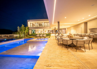 A propriedade apresenta pé-direito duplo, materiais nobres, paisagismo impecável, automação completa e um design que reflete elegância em cada linha.
