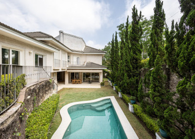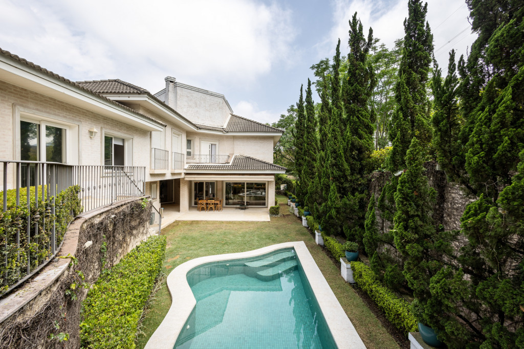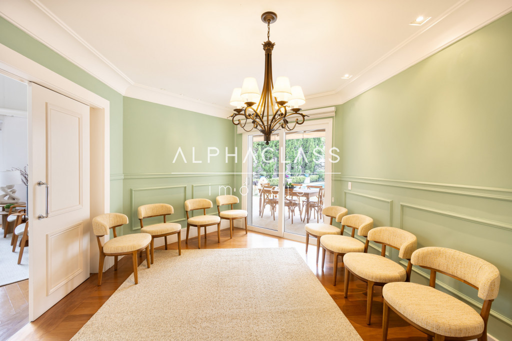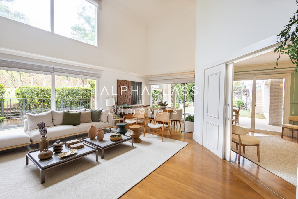 Com oito vagas de garagem, sendo seis cobertas, esta residência reúne estrutura, conforto e alta qualidade de vida em um dos condomínios mais exclusivos de Alphaville.