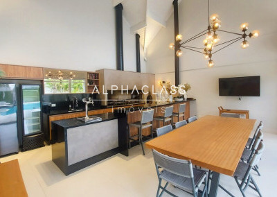 A área de lazer conta com espaço gourmet completo e piscina, formando um ambiente ideal para receber e aproveitar momentos de convivência. A casa dispõe ainda de quatro vagas de garagem.