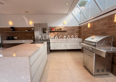 Perfil das casas: imóveis de alto padrão, geralmente com terrenos amplos (acima de 400m²), projetos arquitetônicos sofisticados e áreas de lazer privativas como piscinas, churrasqueiras e espaços gourmet.