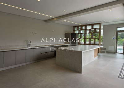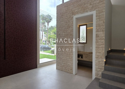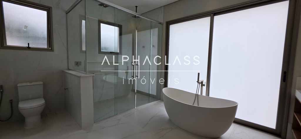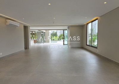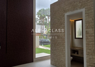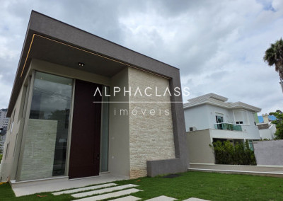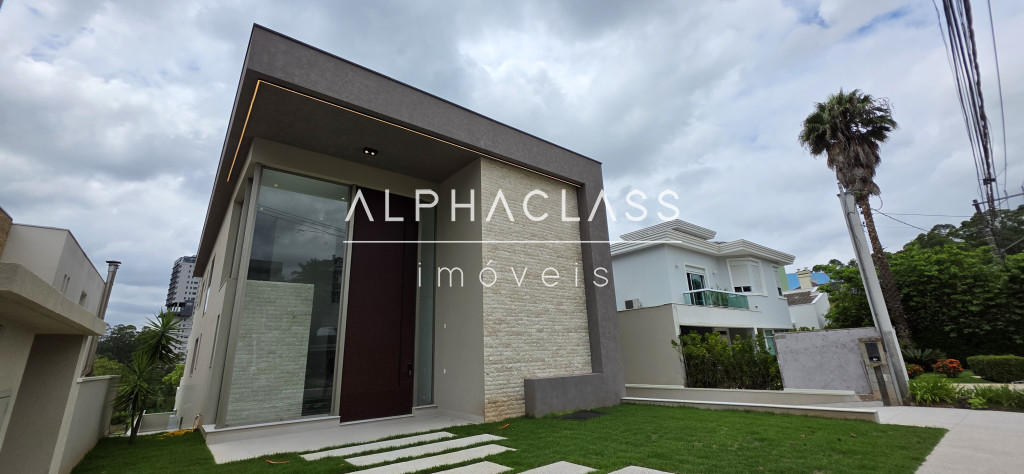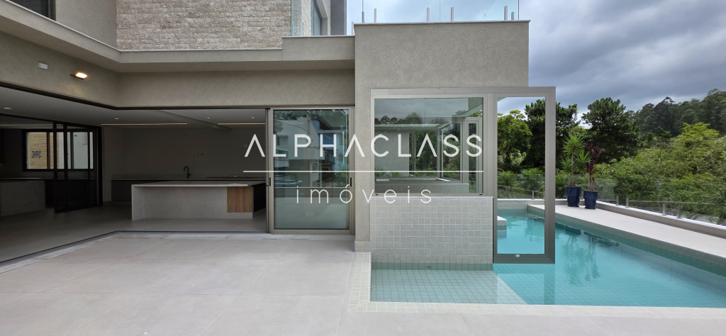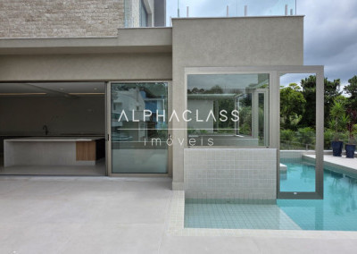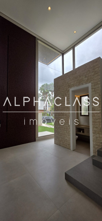 A casa oferece amplitude, integração e abundante luz natural, com grandes painéis de vidro, uso de pedra natural e paisagismo elegante. Um projeto que alia estética, conforto e funcionalidade em alto nível.