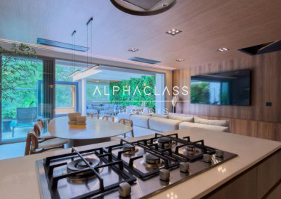 Implantada em terreno de 200 m², com 200 m² de área construída, a residência apresenta projeto funcional e bem distribuído, com living para 3 ambientes, integrando conforto e sofisticação aos espaços sociais.