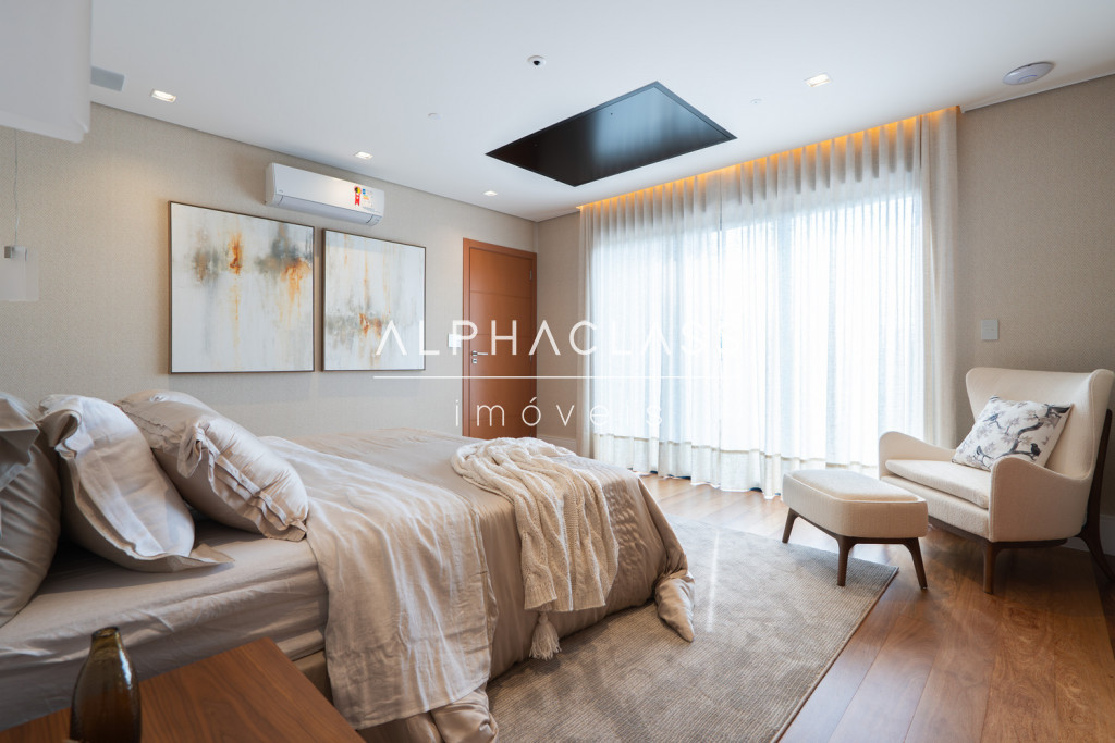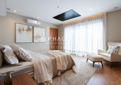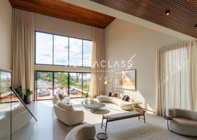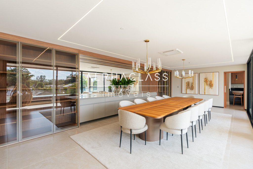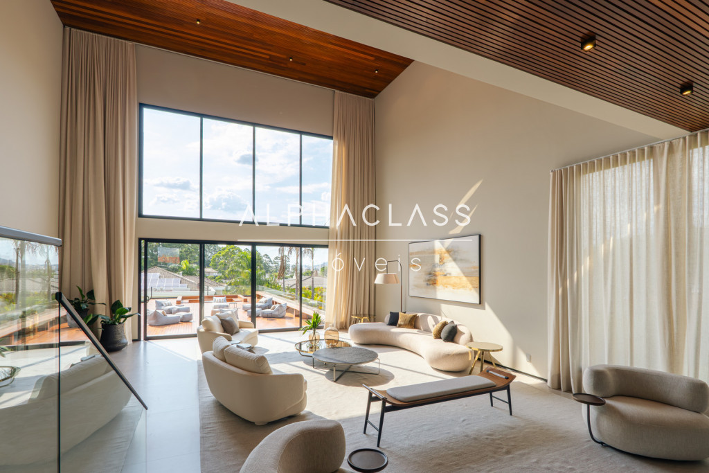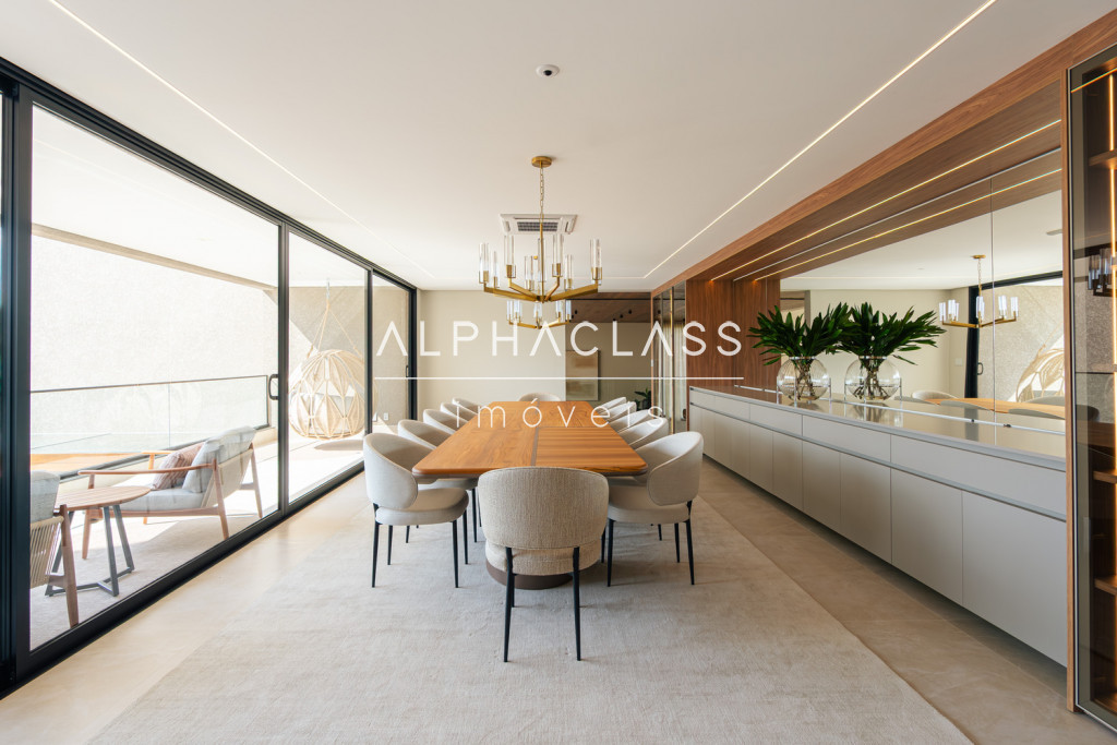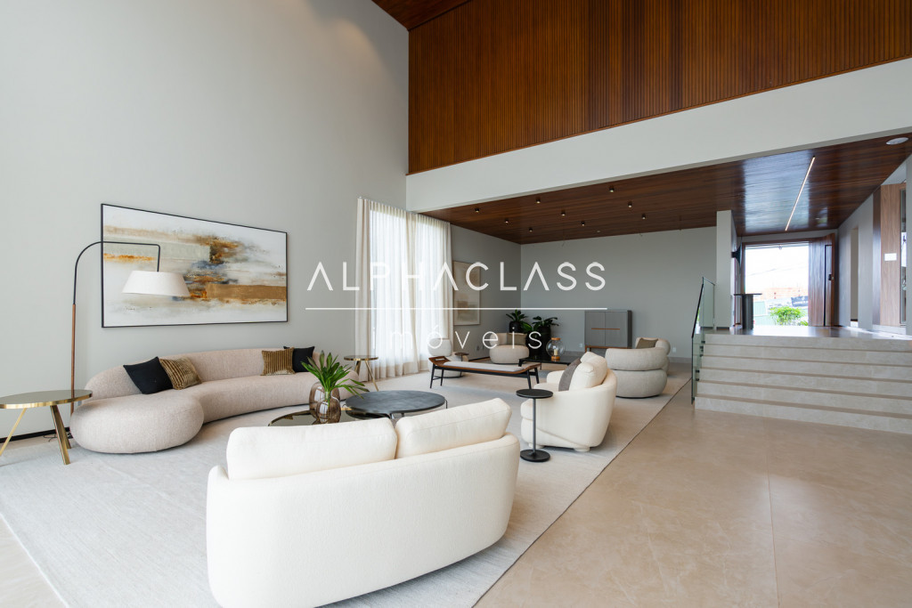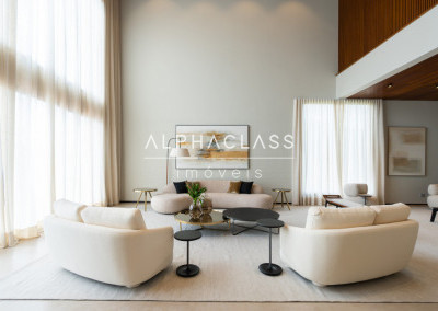 Dispõe de amplo living para três ambientes, integrando salas de estar, jantar e TV, com excelente iluminação natural e pé-direito valorizado. São cinco suítes espaçosas, todas com ótimo padrão de conforto e privacidade.