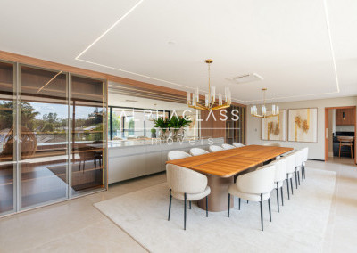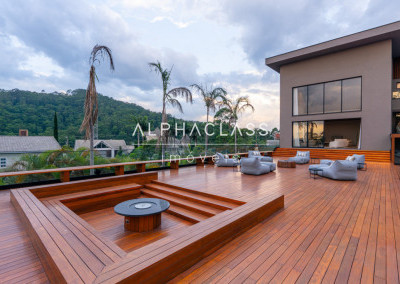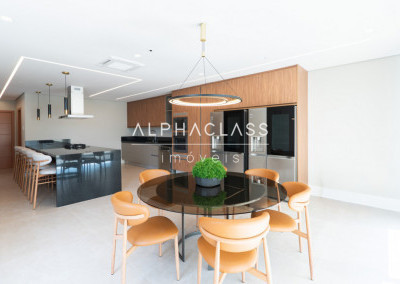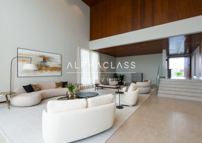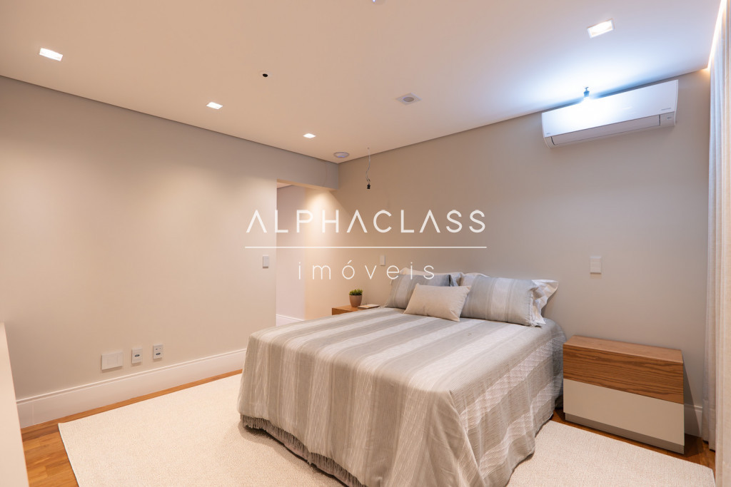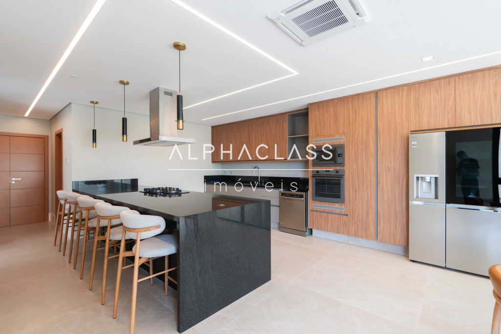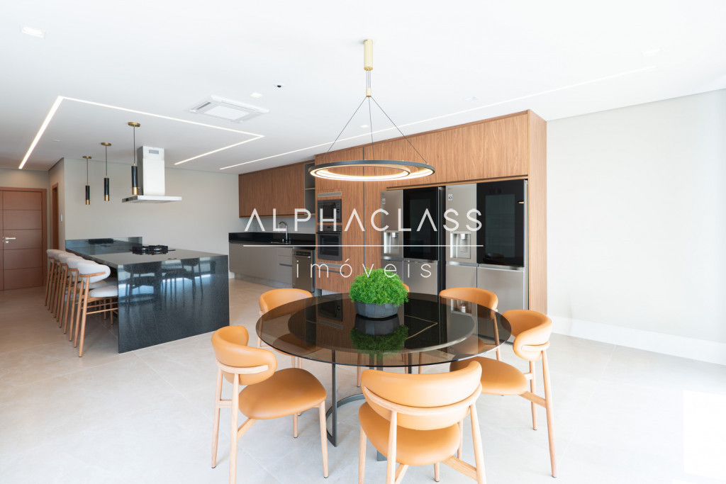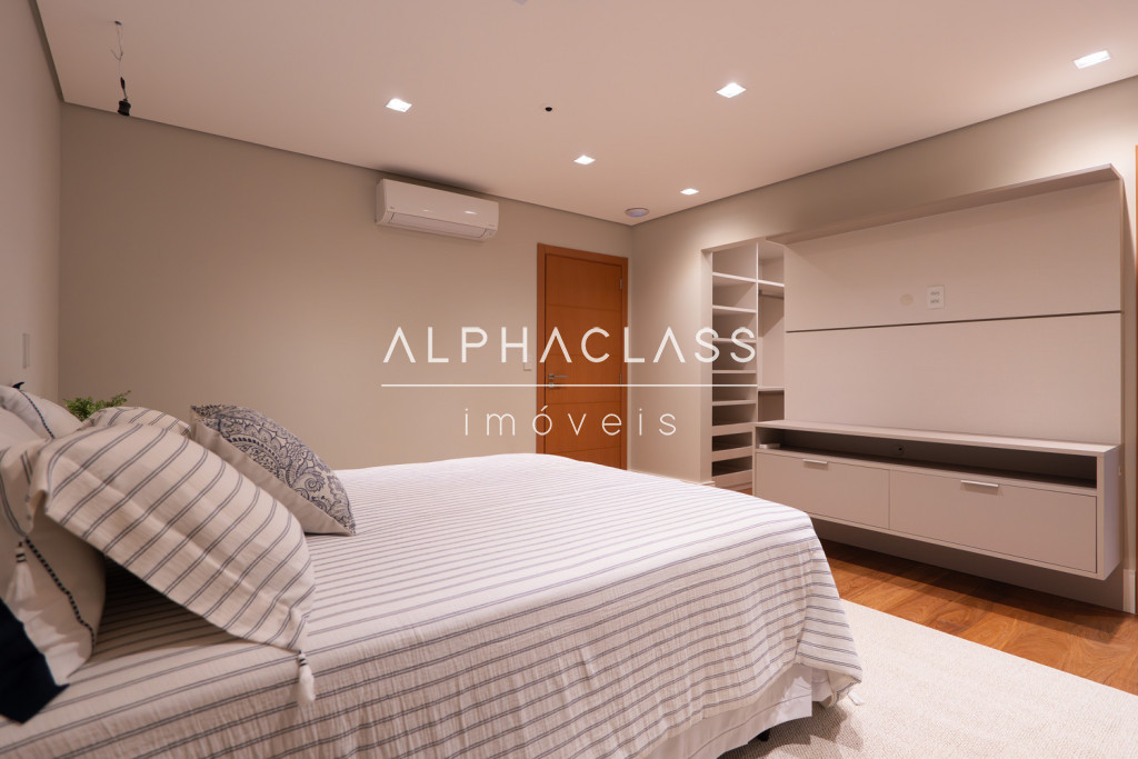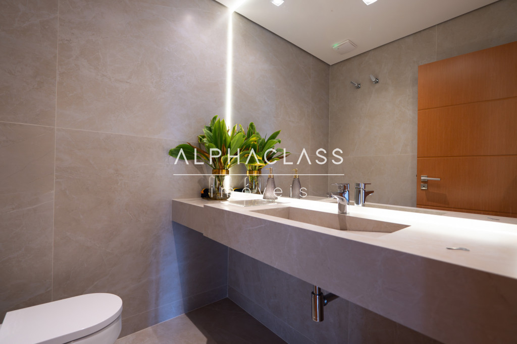 Dispõe de amplo living para três ambientes, integrando salas de estar, jantar e TV, com excelente iluminação natural e pé-direito valorizado. São cinco suítes espaçosas, todas com ótimo padrão de conforto e privacidade.