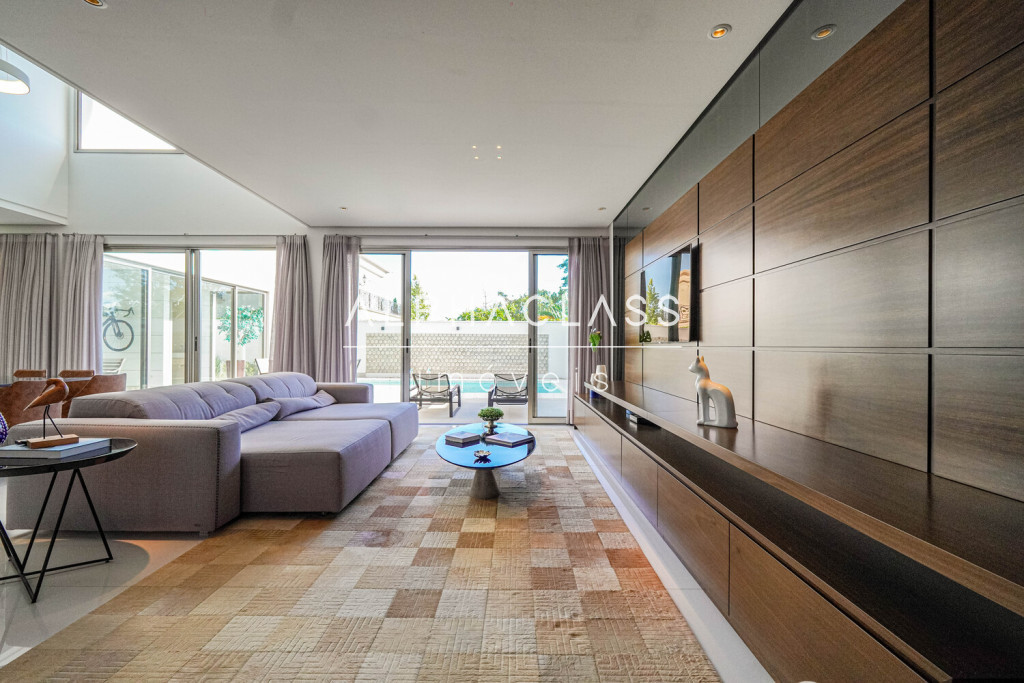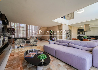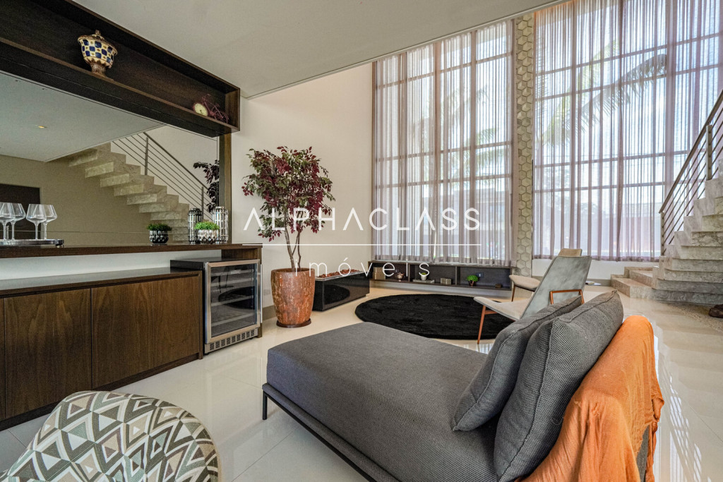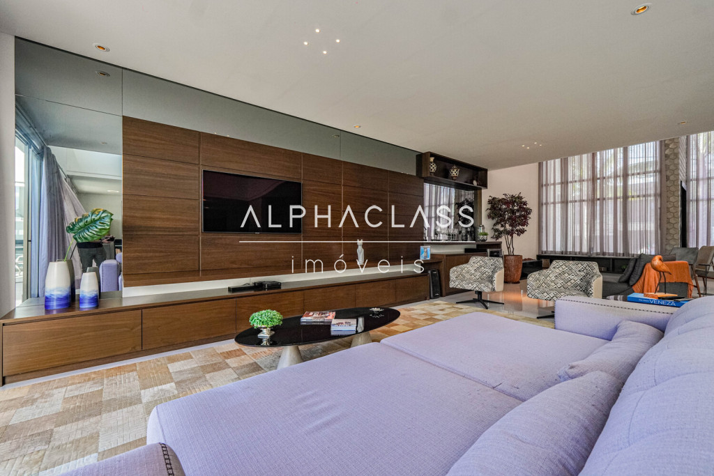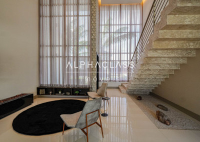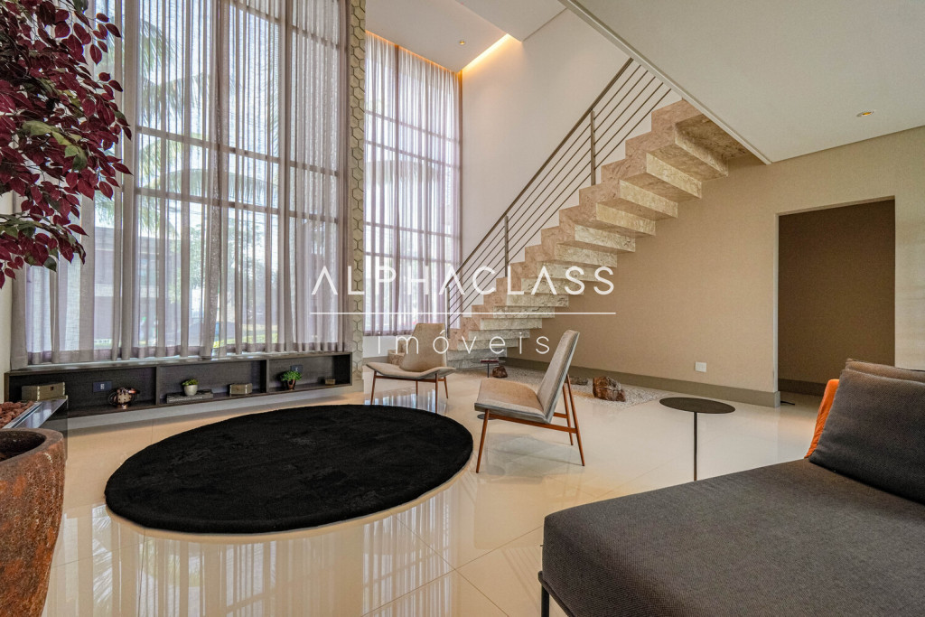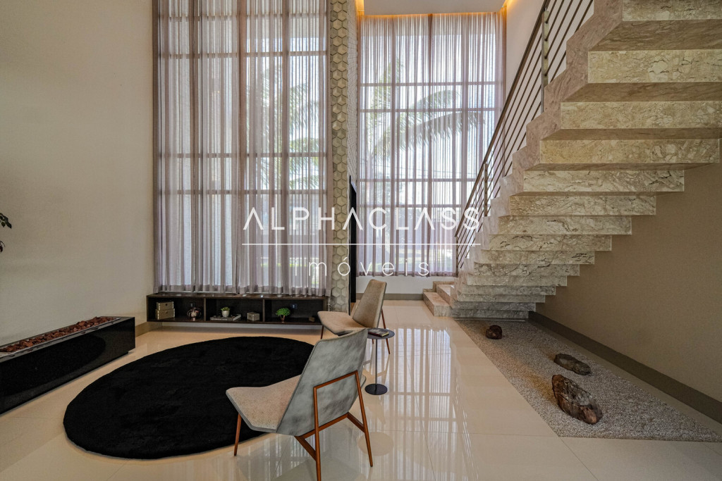 O imóvel conta com living para três ambientes, integrando salas de estar, jantar e TV, com boa iluminação natural e ambientes bem distribuídos. São quatro suítes, sendo uma destinada a funcionários, garantindo praticidade e organização no dia a dia.