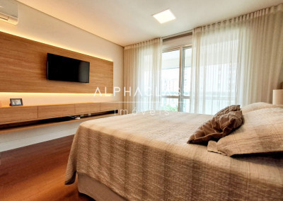São 4 suítes, garantindo privacidade e comodidade para toda a família. Totalmente mobiliado, o apartamento apresenta acabamentos de alto padrão e está pronto para morar.