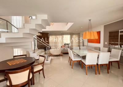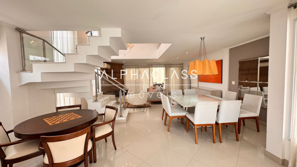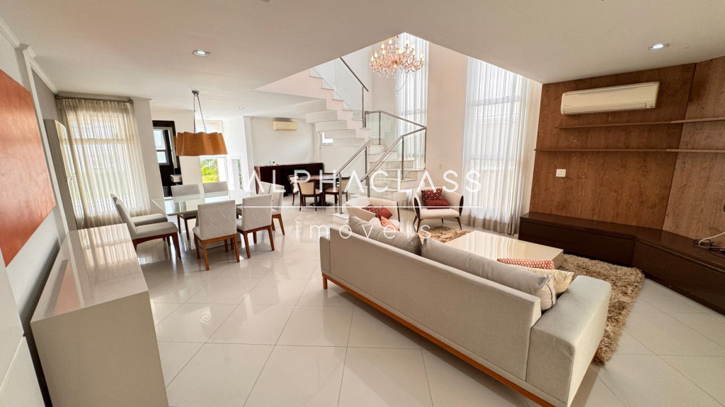 A casa oferece 4 vagas de garagem e está localizada em um dos residenciais mais tradicionais de Alphaville, com segurança 24 horas e excelente infraestrutura.