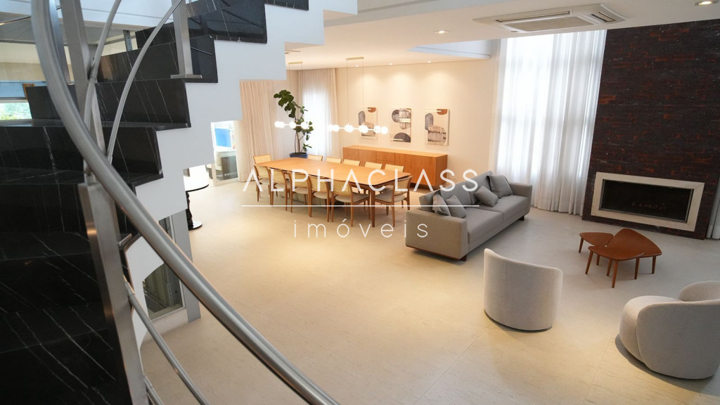 Dispõe de 4 vagas de garagem e está localizado em um dos condomínios mais valorizados de Alphaville, com segurança 24 horas e excelente infraestrutura.