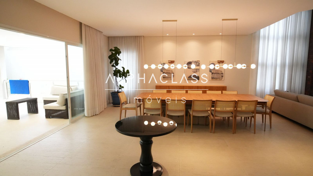 Imóvel amplo e sofisticado, totalmente mobiliado, com três livings integrados para três ambientes, oferecendo conforto e elegância para receber familiares e convidados. Os espaços são bem iluminados e integrados, valorizando a convivência e o bem-estar.
